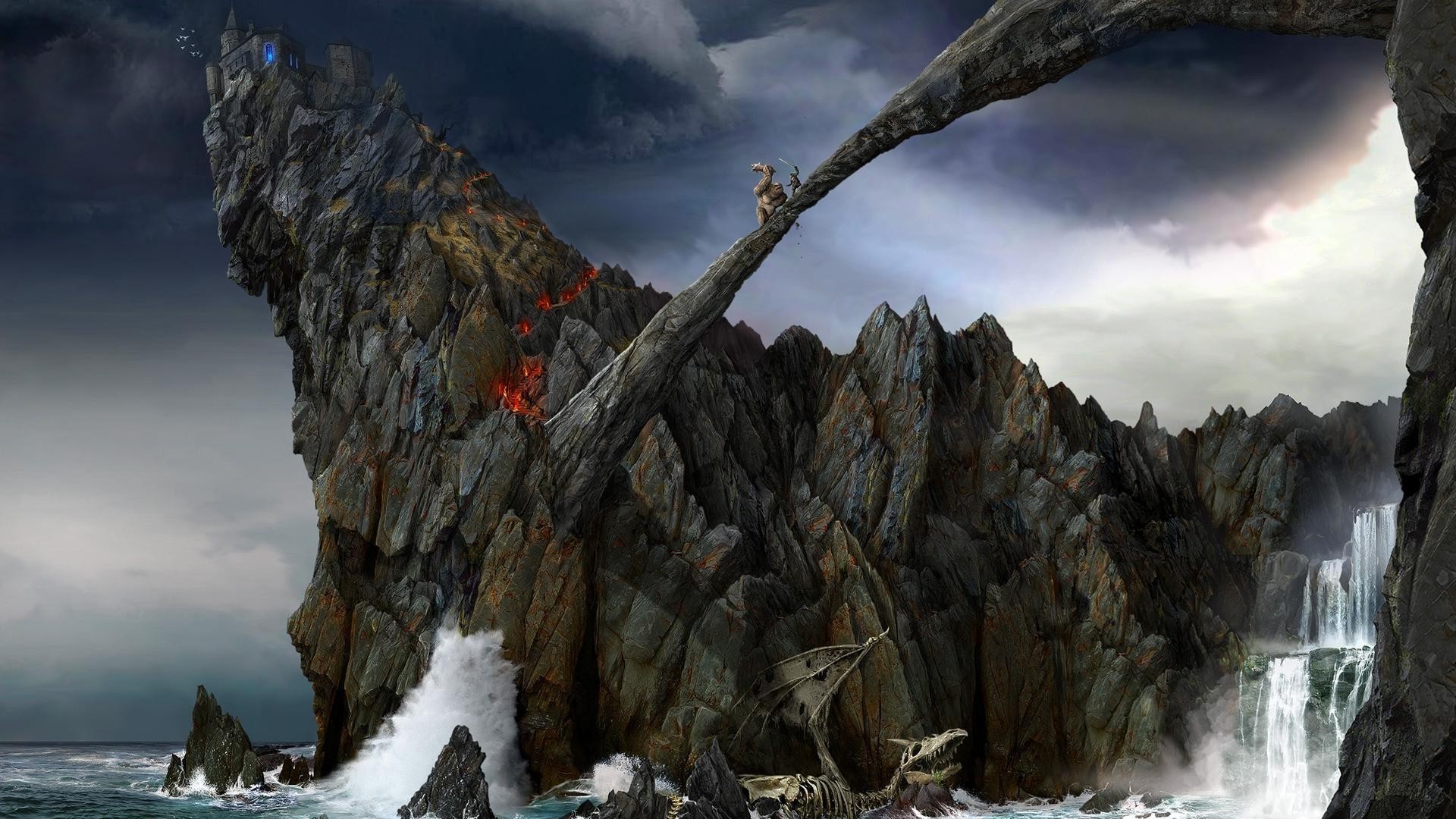 Roccia e Ponte di pietra sopra il drago