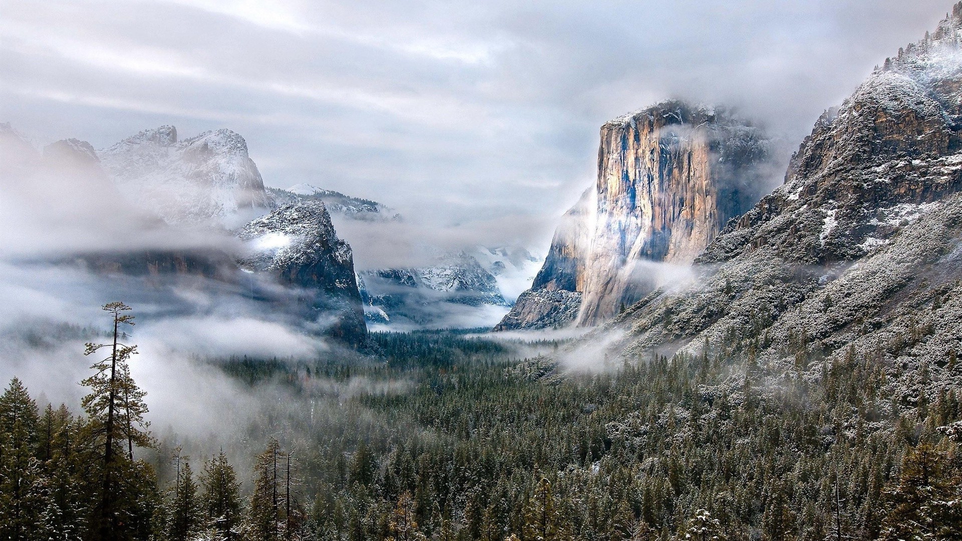 Vista della valle e delle rocce trascinate dalla nebbiaVista della valle e delle rocce trascinate dalla nebbia