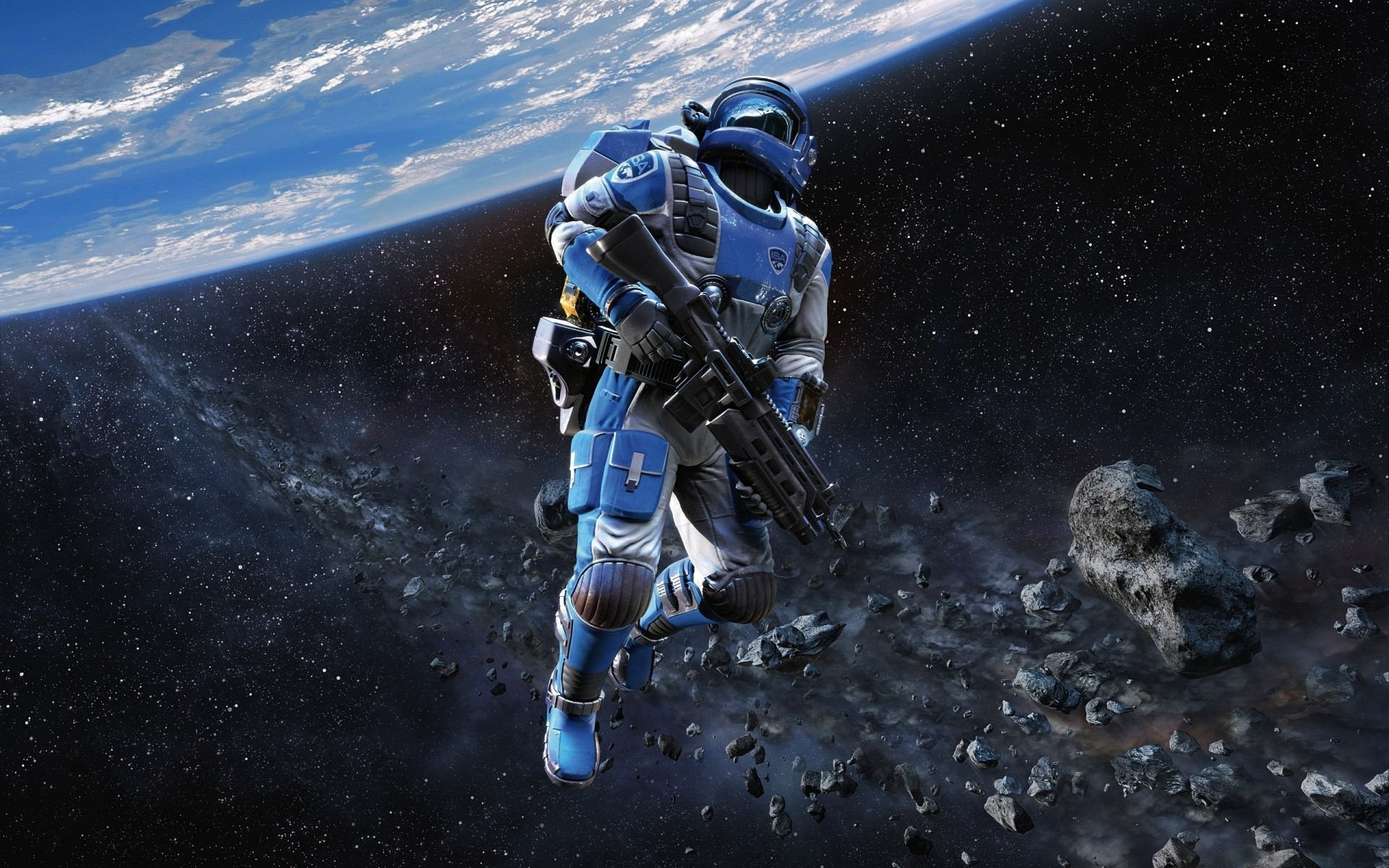 Soldati del futuro in tute spaziali da combattimentoSoldati del futuro in tute spaziali da combattimento
