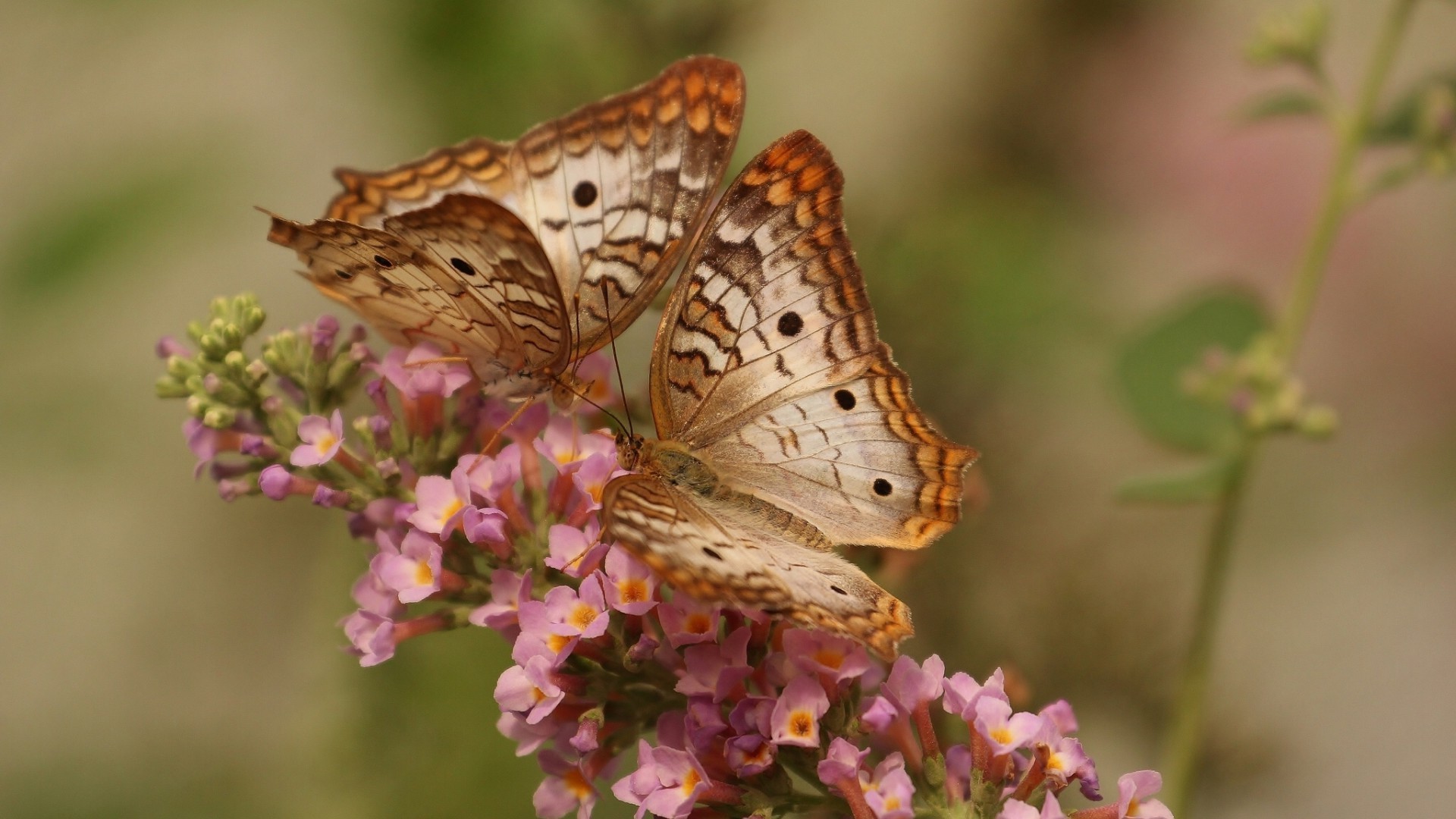 Due farfalle mangiano il nettare da un fiore rosa
