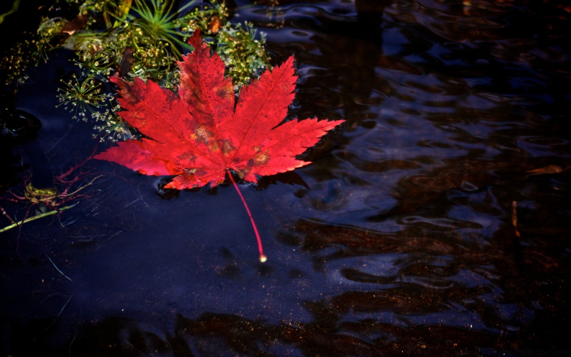 Foglia d'acero rossa caduta in acqua