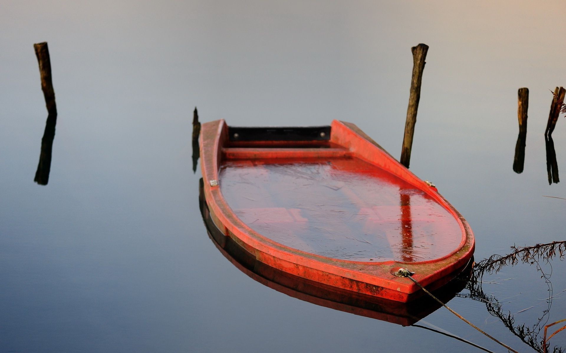 Barca rossa affondata nel lago