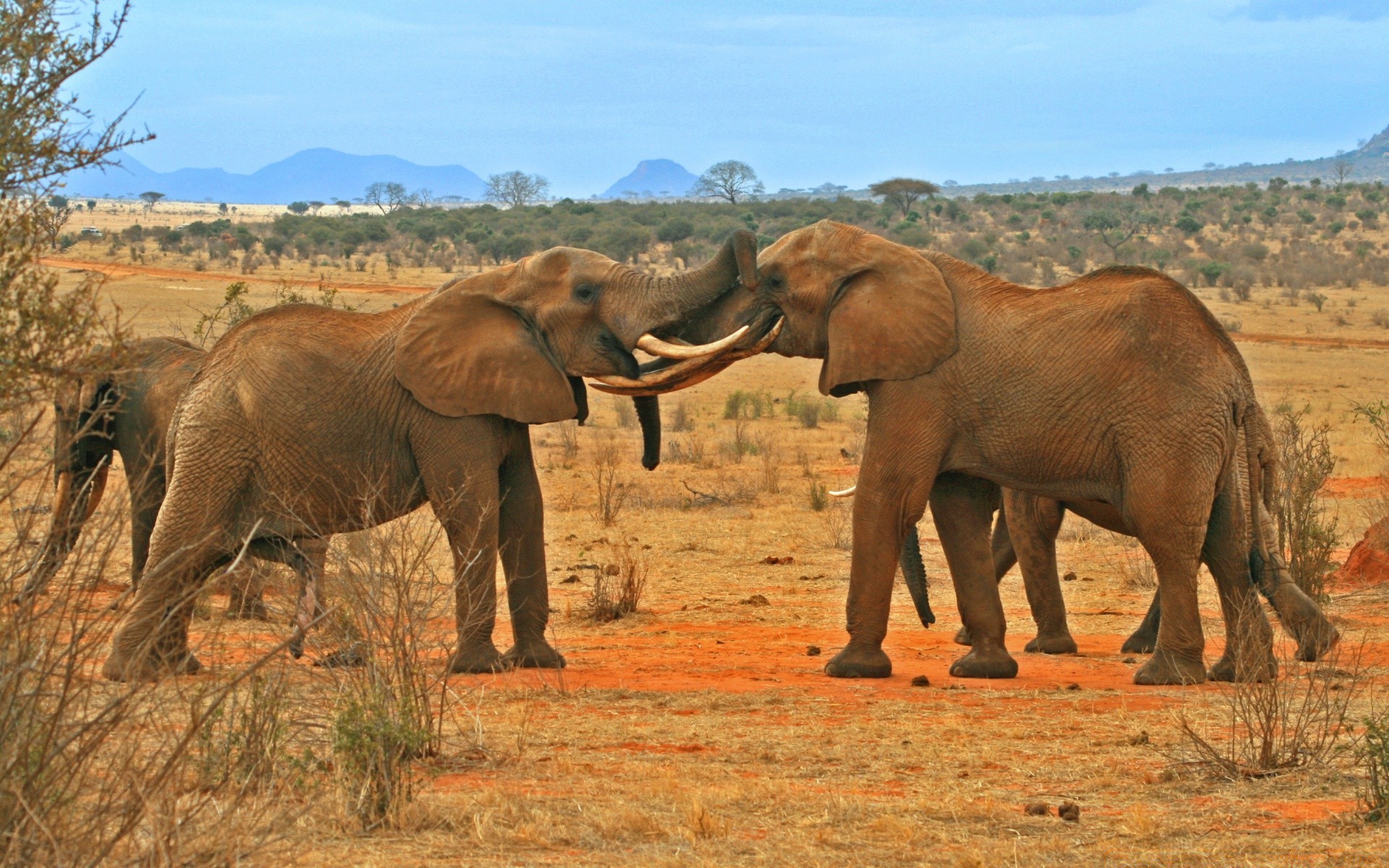 Mandria di elefanti sullo sfondo della natura della savana