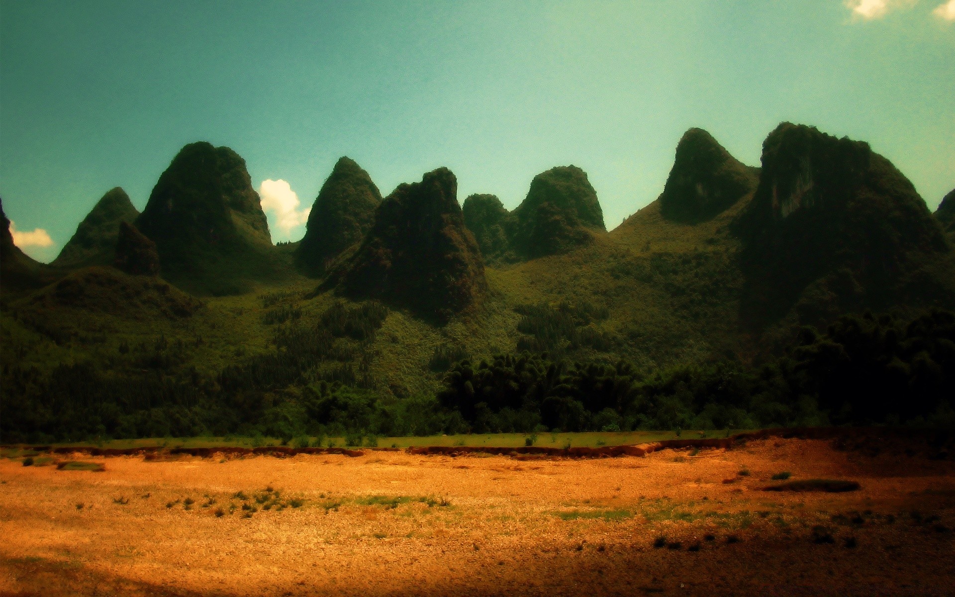 Montagne verdi e campi gialli
