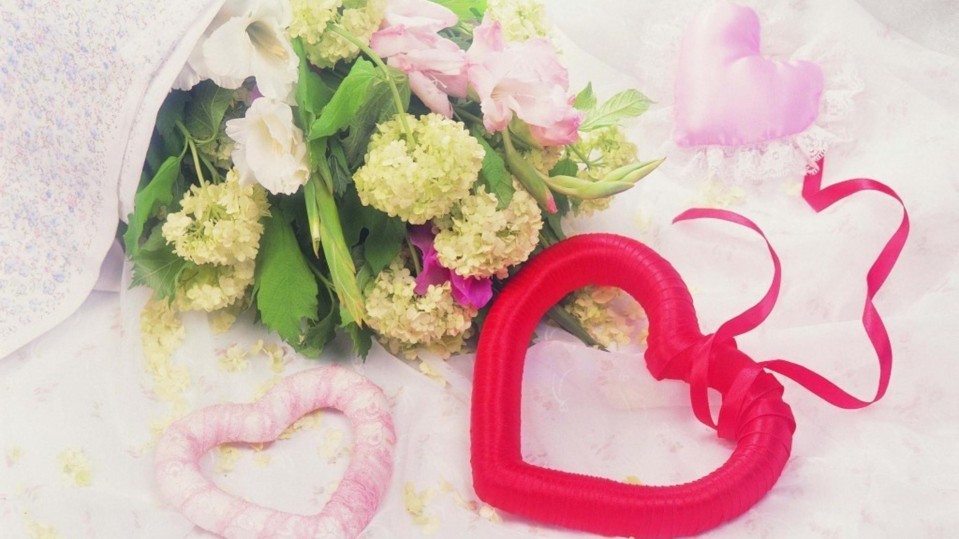 Bellissimo cuore con un mazzo di fiori