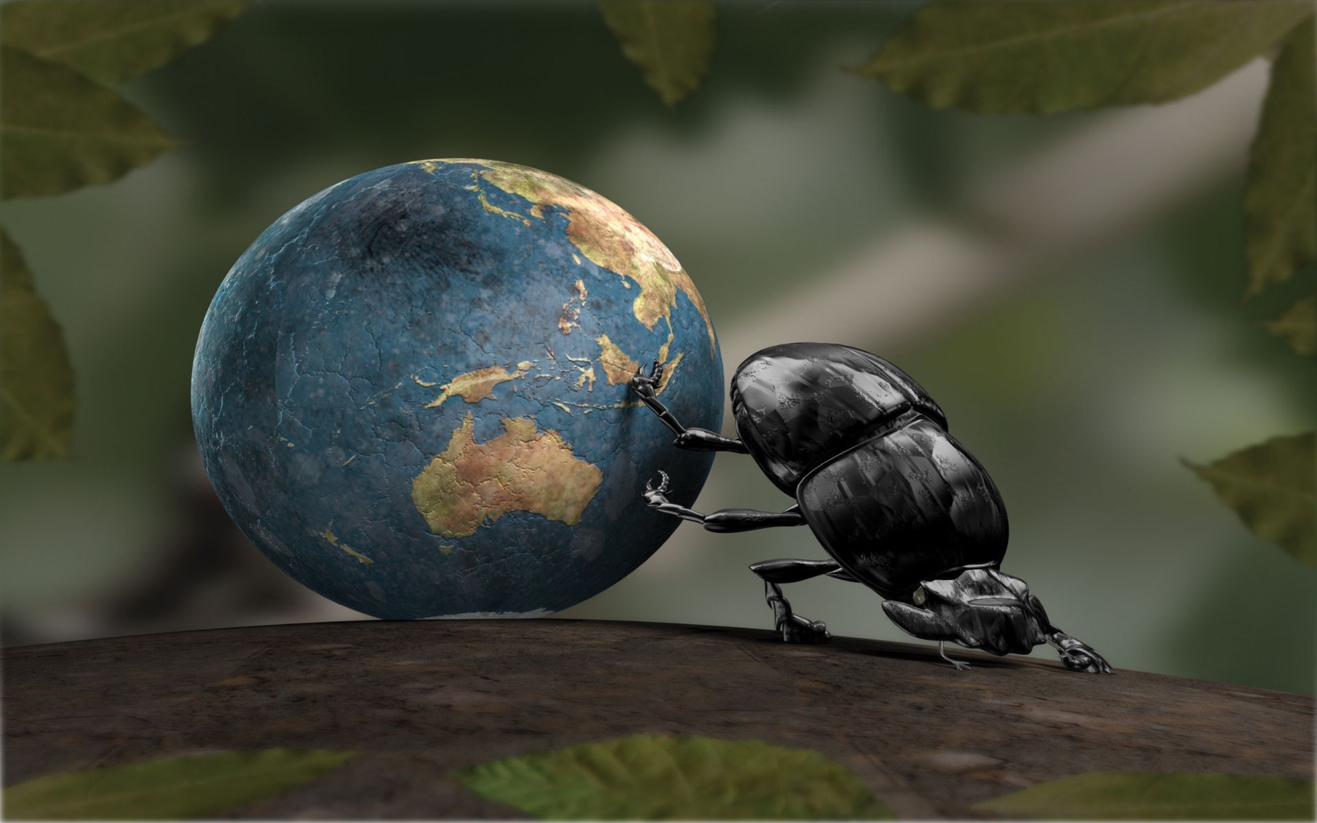 Lo scarabeo spinge il cibo futuro in un nido su un albero