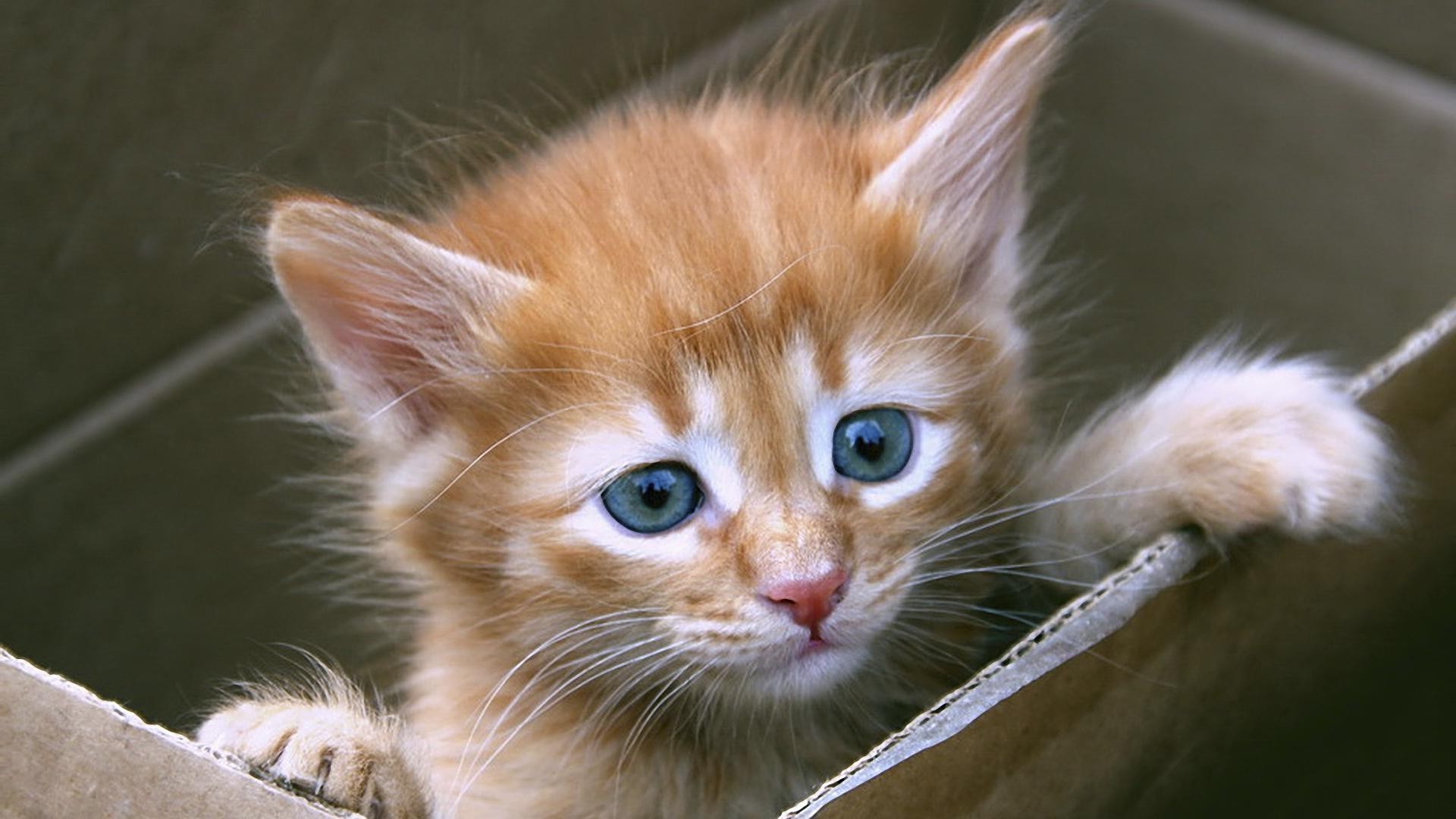 Gattino dagli occhi Azzurri Rossi in una scatola