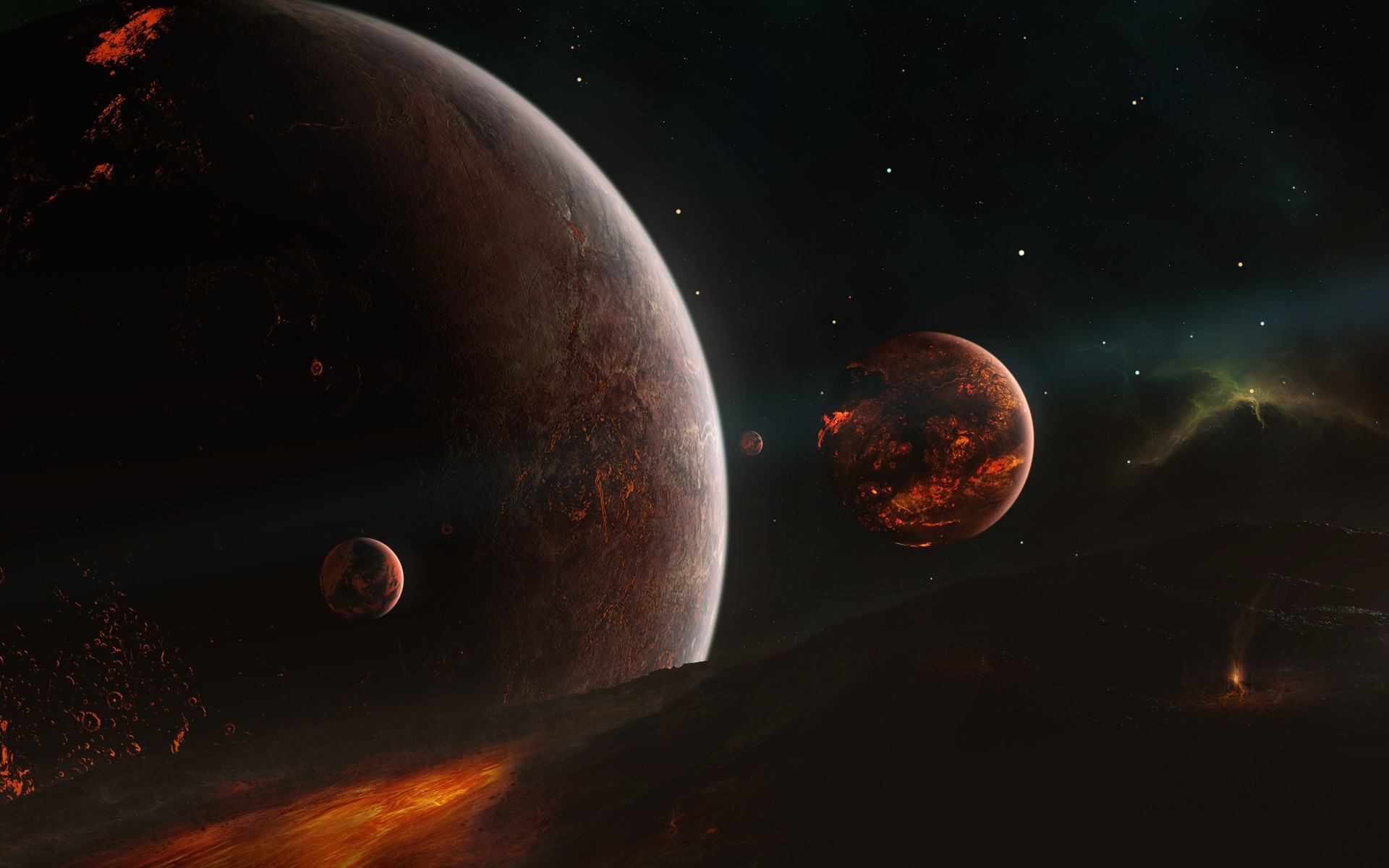 Grafica sotto forma di più pianeti nello spazio