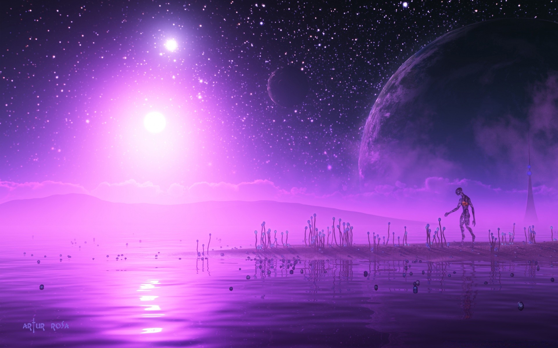 Viaggiatore solitario sullo sfondo del cielo lunare