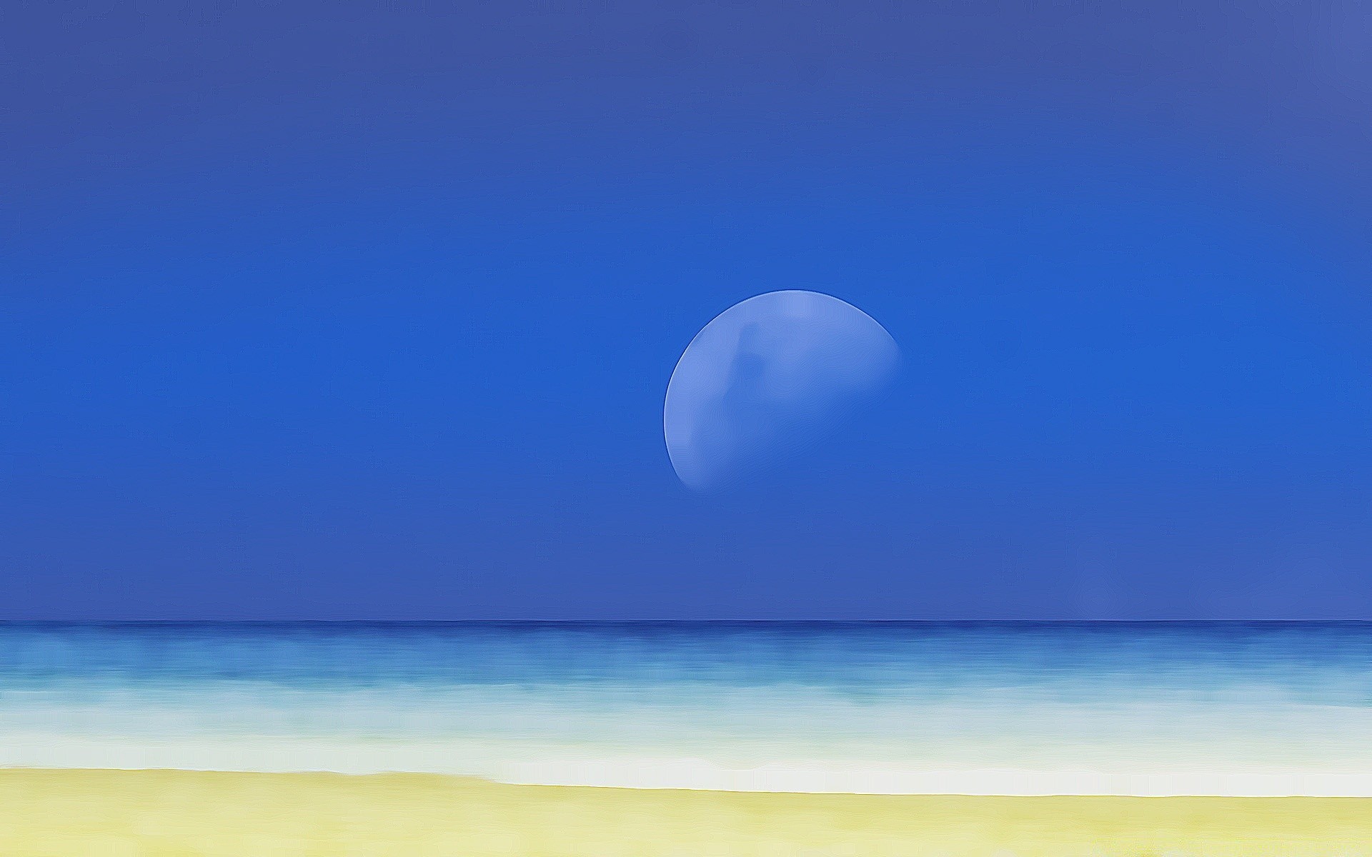 Disegno di una luna piena su un cielo blu scuro durante il surf