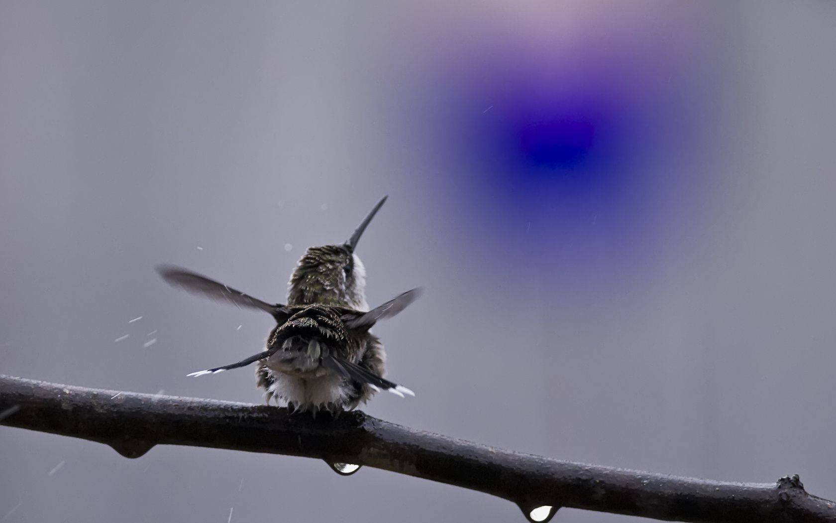 Uccello bagnato su un ramo