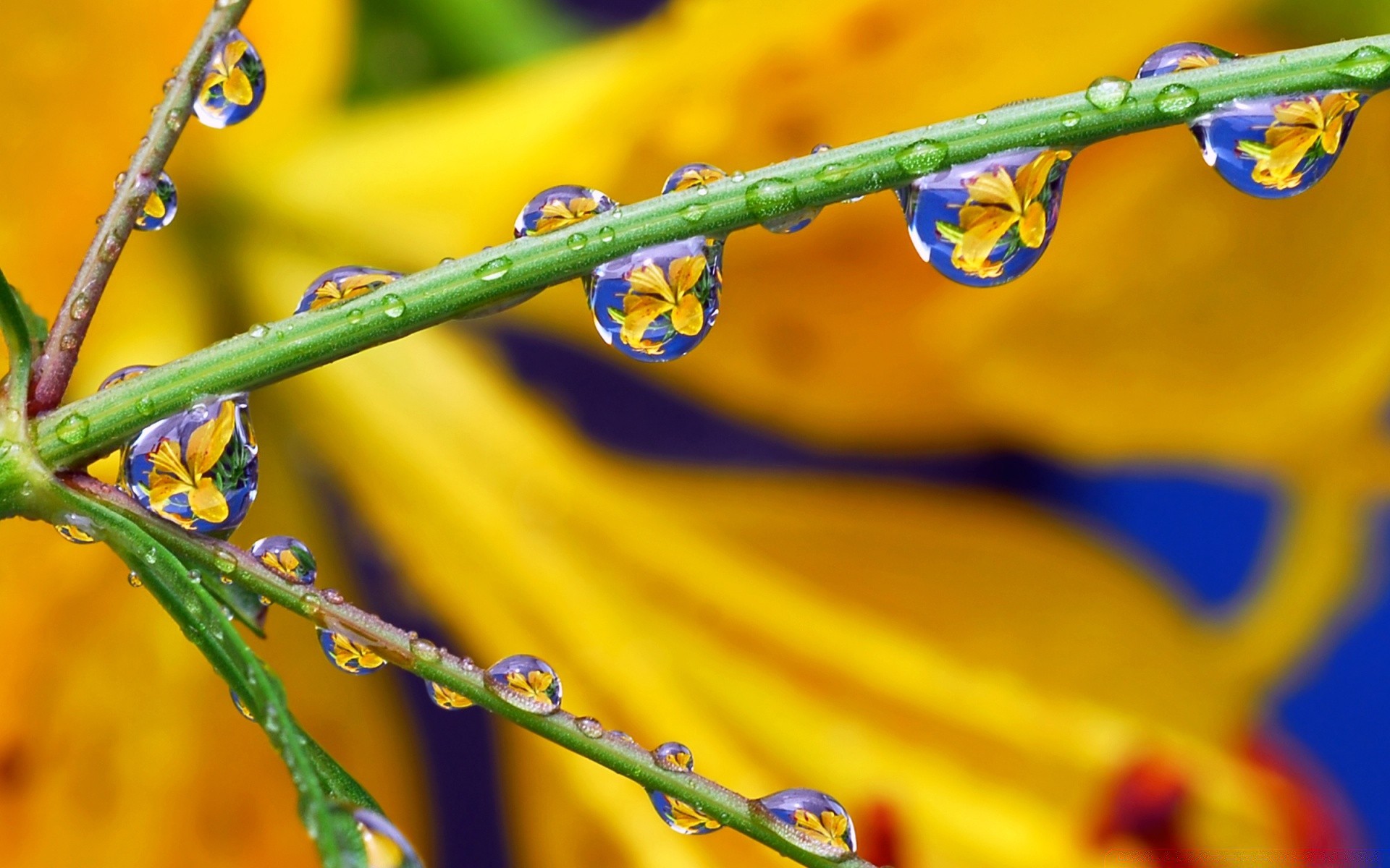 La natura si sveglia. Gocce della prima pioggia primaverile su un ramo
