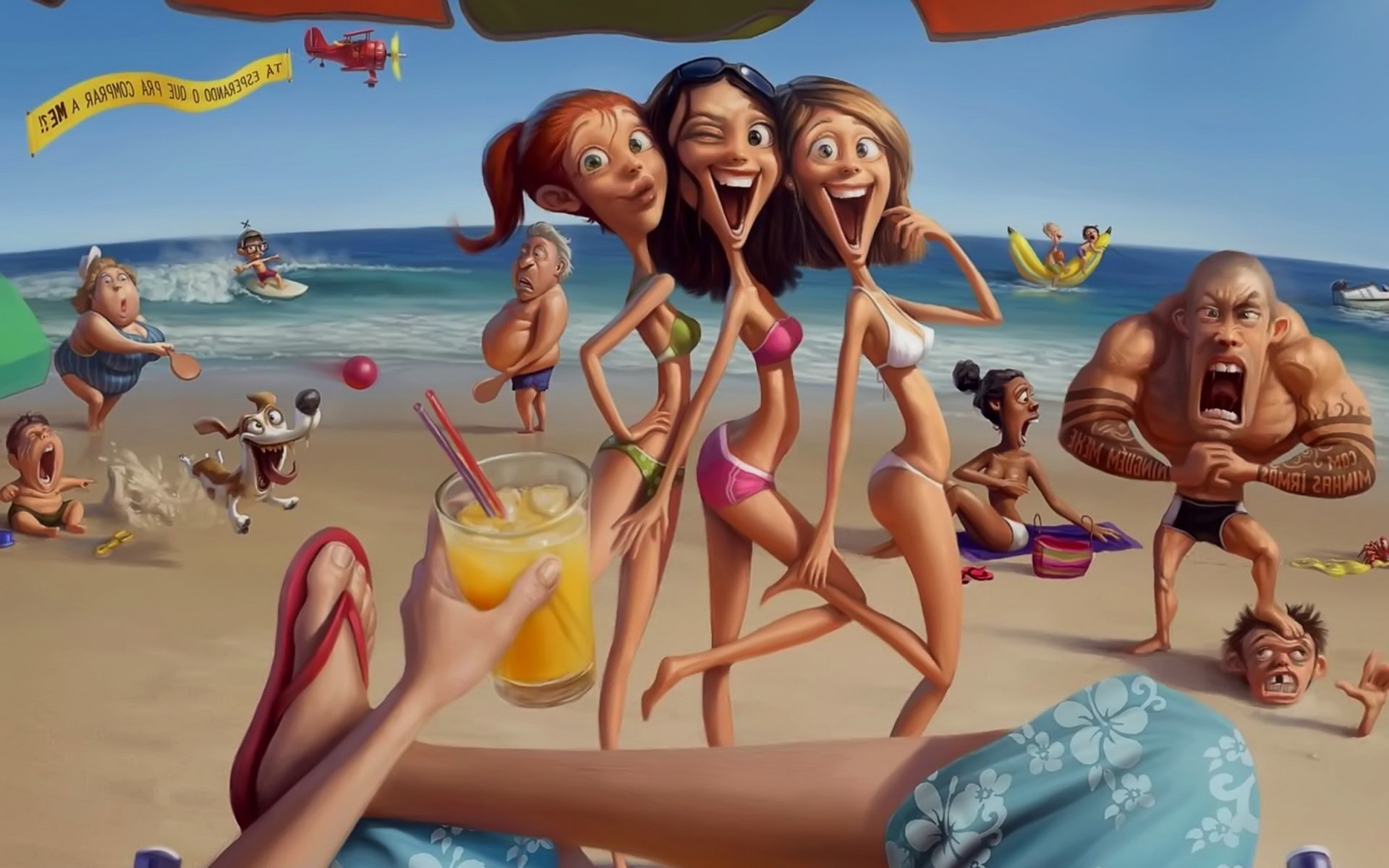 Vacanza, giornata estiva, persone sulla spiaggia di sabbia