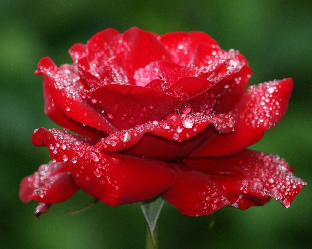 Bocciolo di rosa con gocce d'acqua su sfondo verde