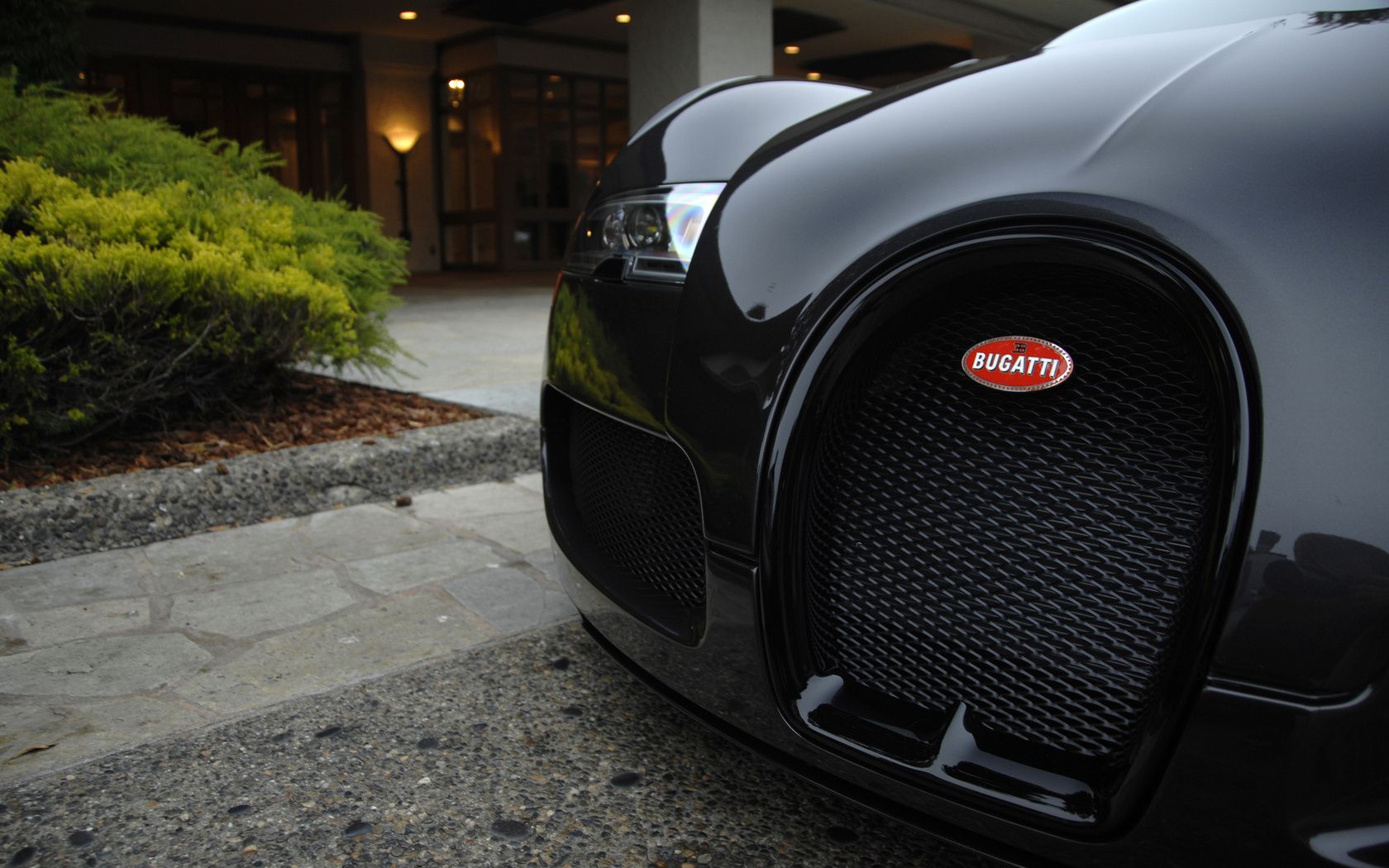 Paraurti anteriore Bugatti parcheggiato vicino al cespuglio verde