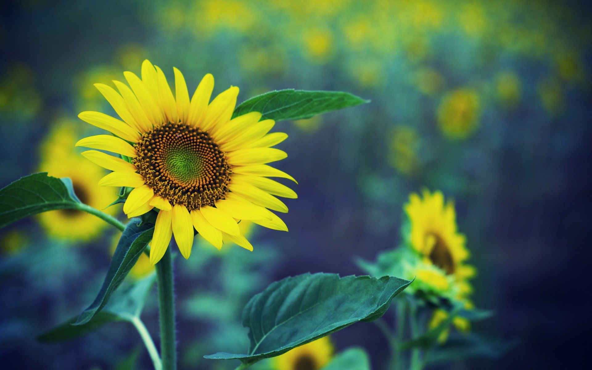 Girasole giallo su sfondo verde