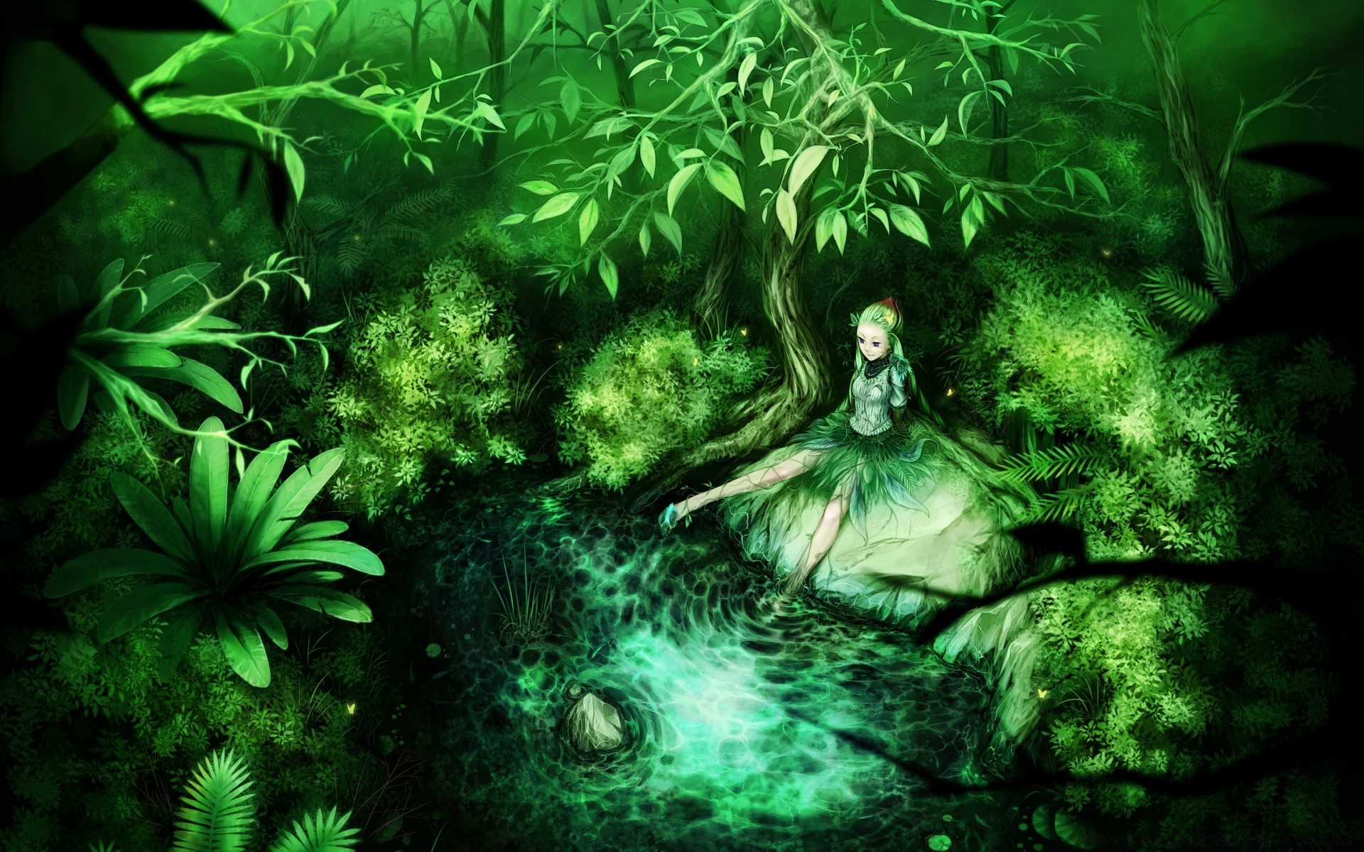 Ragazze anime che camminano nella foresta. strega, fate. raggi di sole tra gli alberi