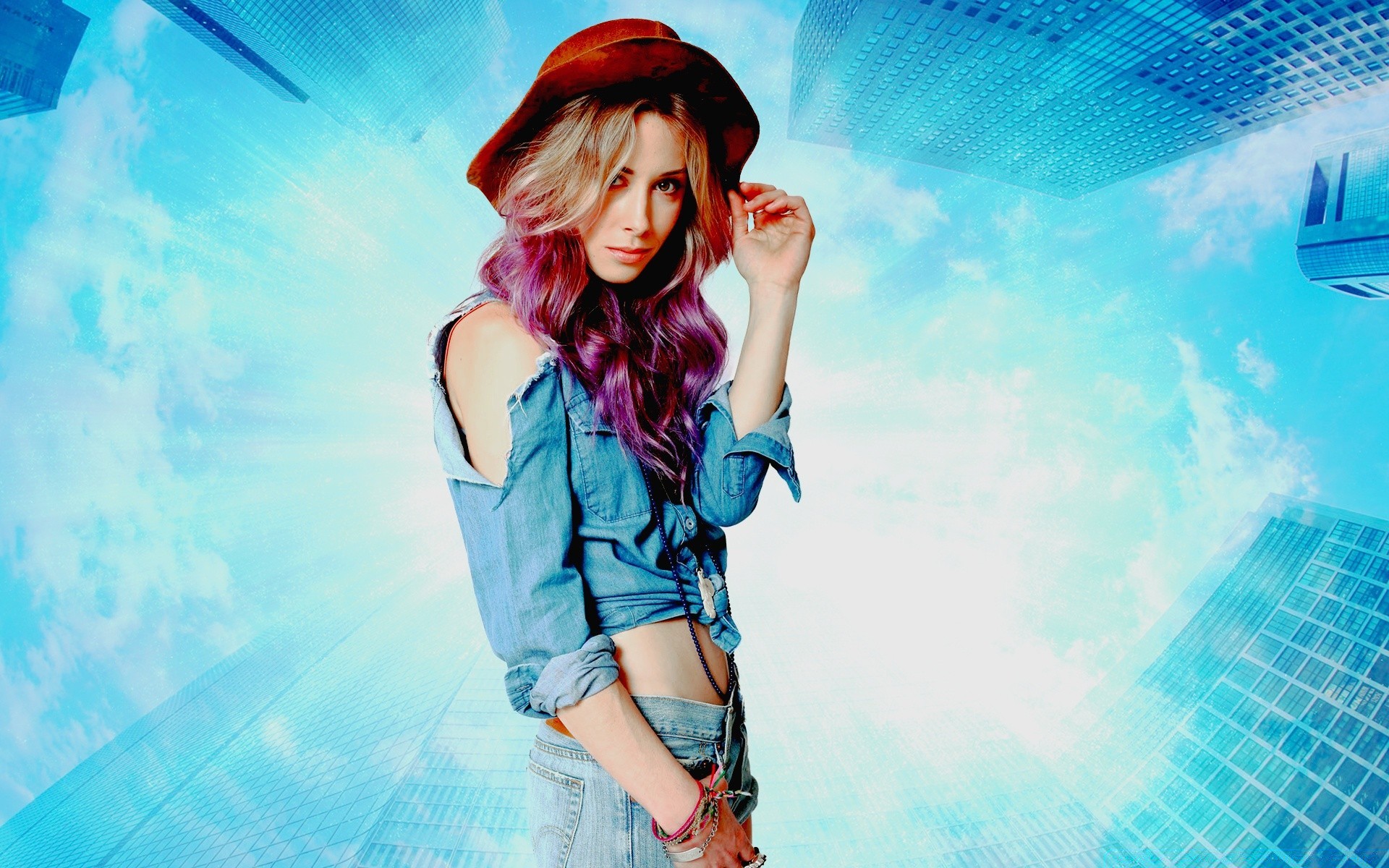 Ragazza su sfondo blu brillante