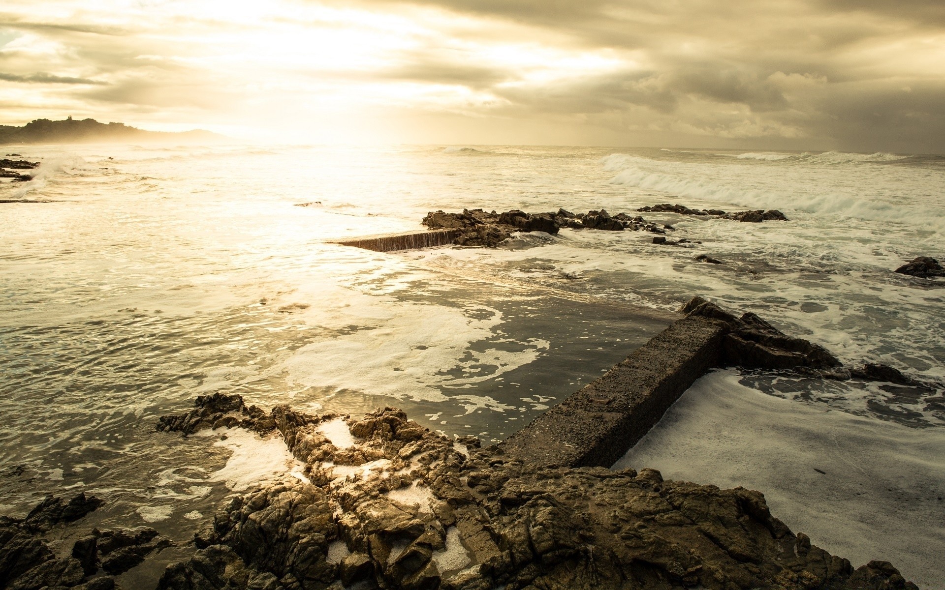 Tranquillo paesaggio marino sullo sfondo del cielo al tramontoTranquillo paesaggio marino sullo sfondo del cielo al tramonto