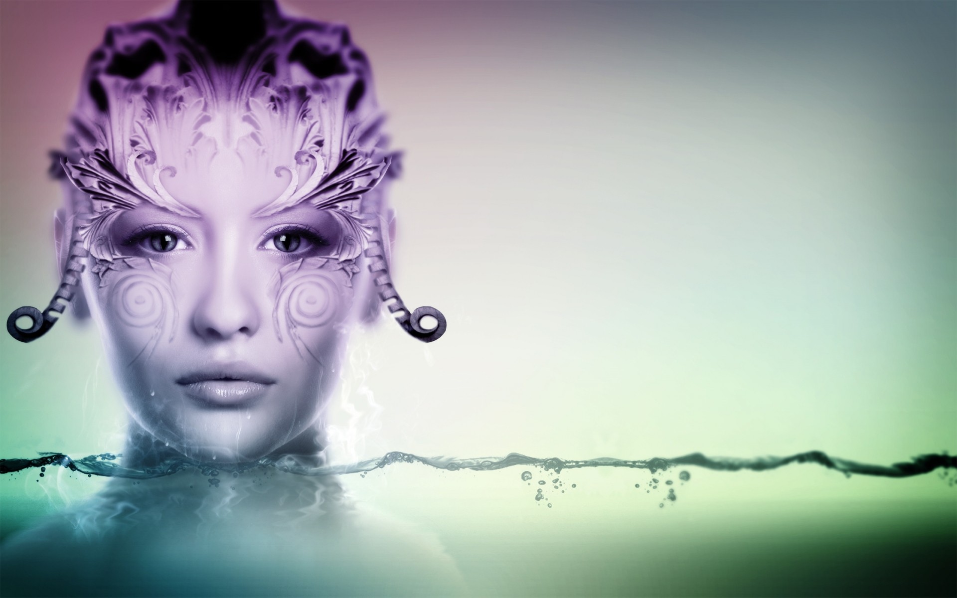 Faccia della ragazza su uno sfondo di acqua colorataFaccia della ragazza su uno sfondo di acqua colorata