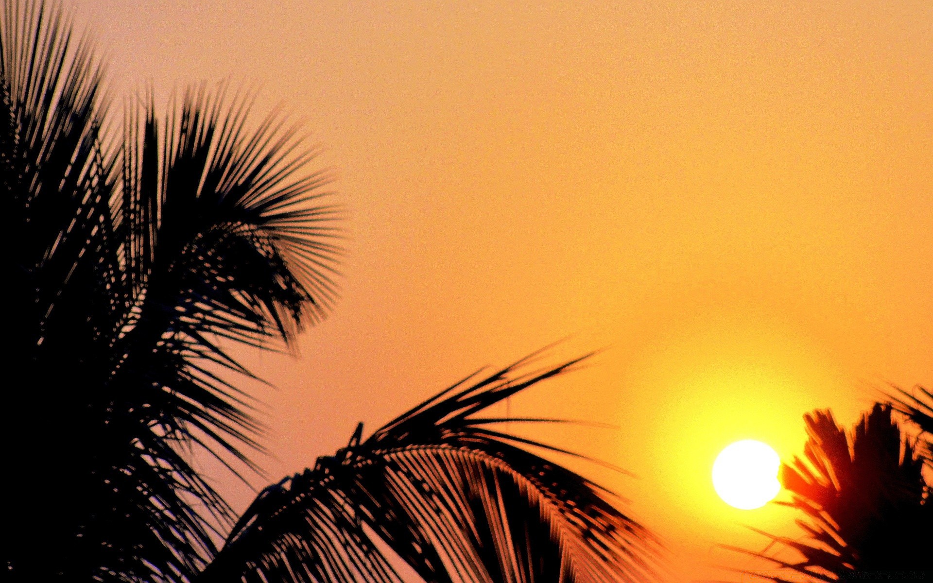 Quattro alberi sullo sfondo di un bellissimo tramonto
