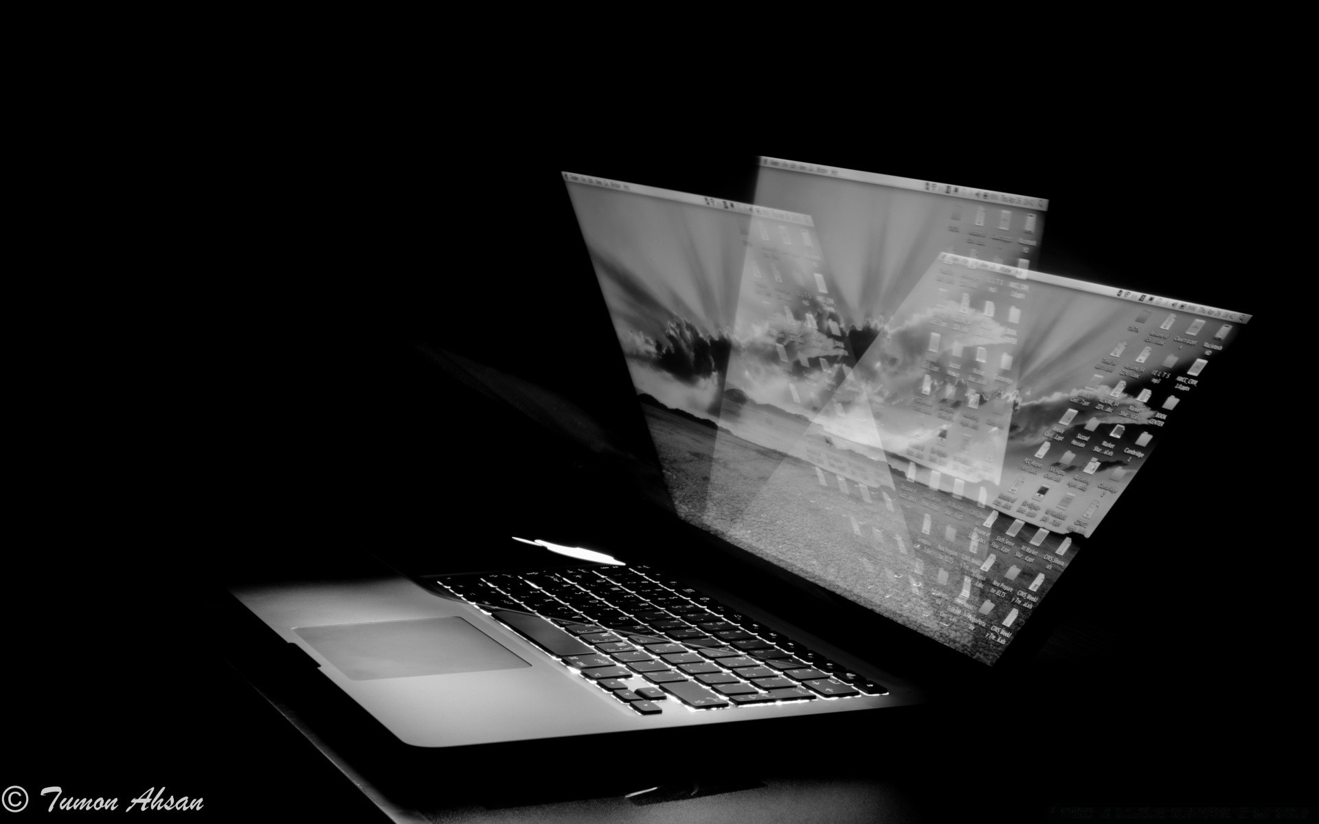 Notebook monocromatico su sfondo nero