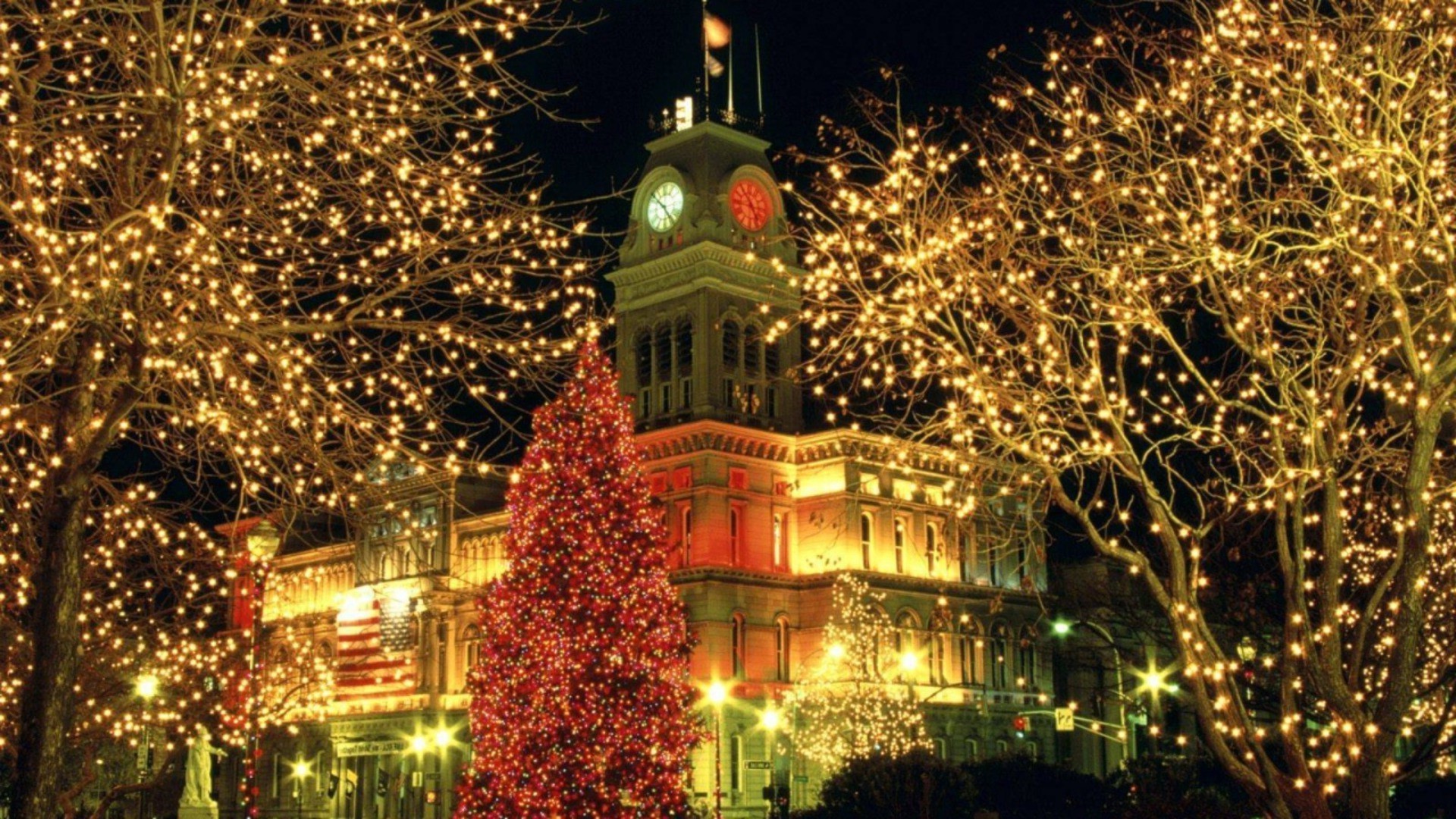 Decorazione festiva per l'illuminazione degli alberi con ghirlande