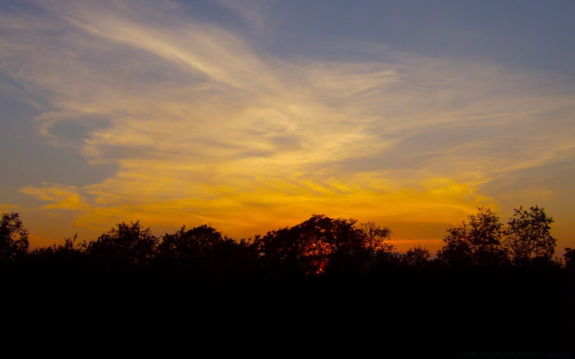 Paesaggio del tramonto serale sullo sfondo della foresta