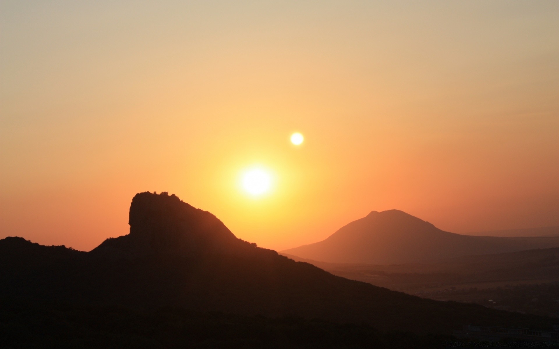 Il tramonto si nasconde dietro i tetti scuri delle case in un luminoso cielo arancione