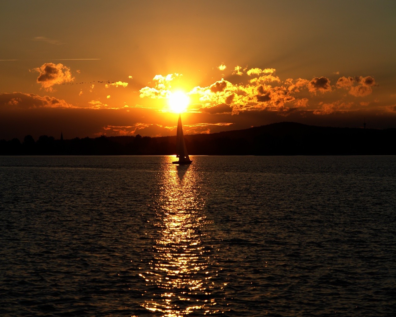 Barca con vela sullo sfondo del tramonto