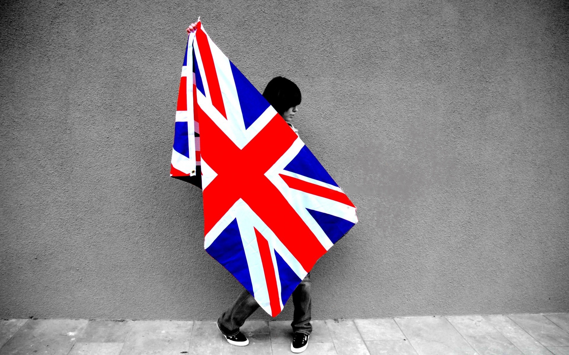 Piede di Miki mouse sullo sfondo della bandiera