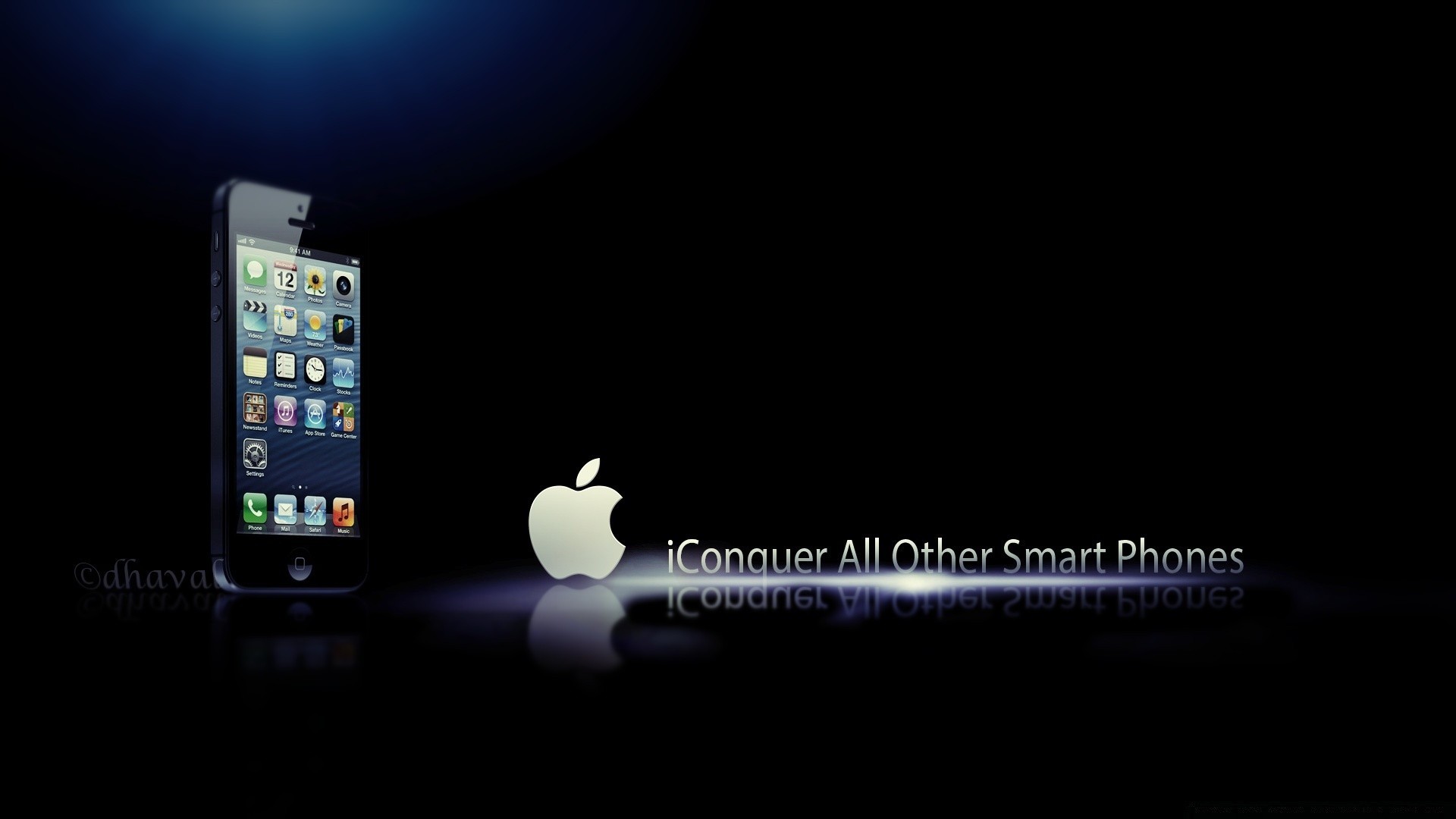 Logo Apple su sfondo scuro e smartphone