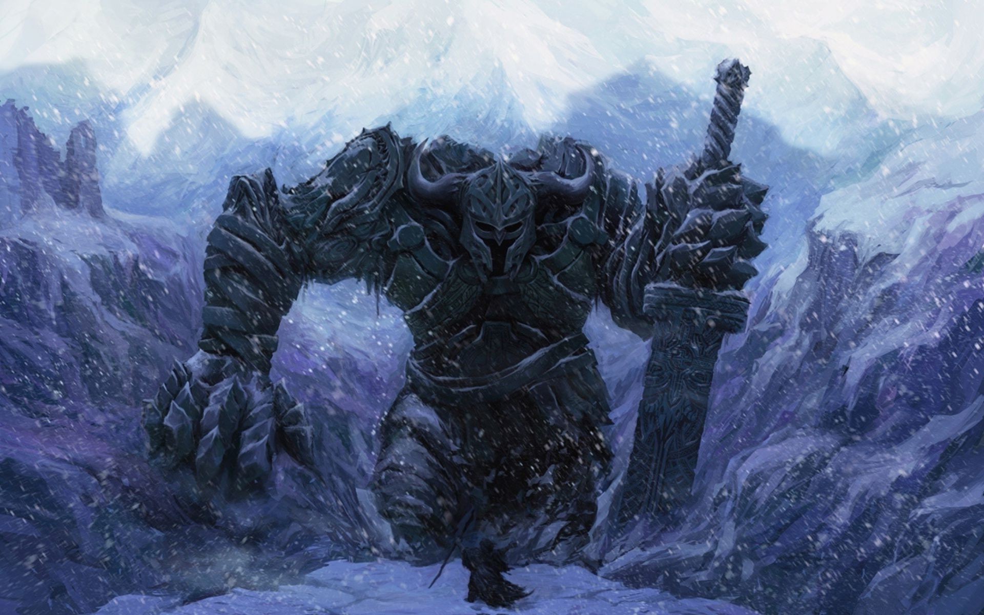 Enorme uomo di ghiaccio con una spada