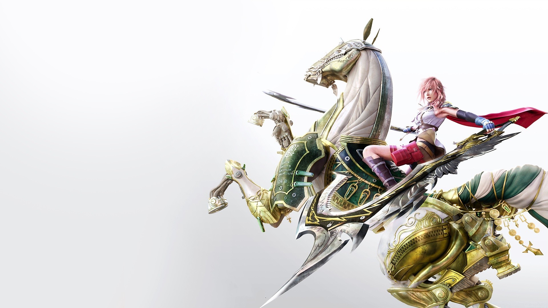 Final fantasy, un'eroina in un mantello rosso a cavallo di un cavallo bianco in armatura con una spada in mano