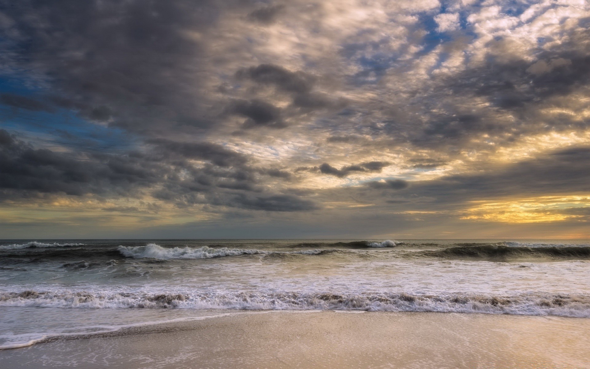 Spiaggia di sabbia con il mare prima della tempestaSpiaggia di sabbia con il mare prima della tempesta
