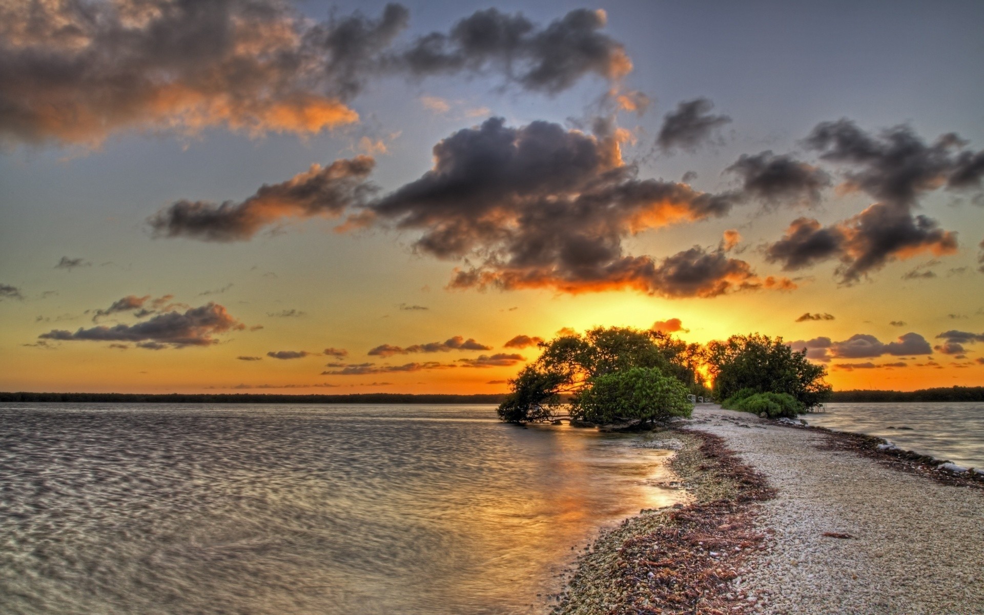 Un sottile banco di sabbia che porta al tramonto