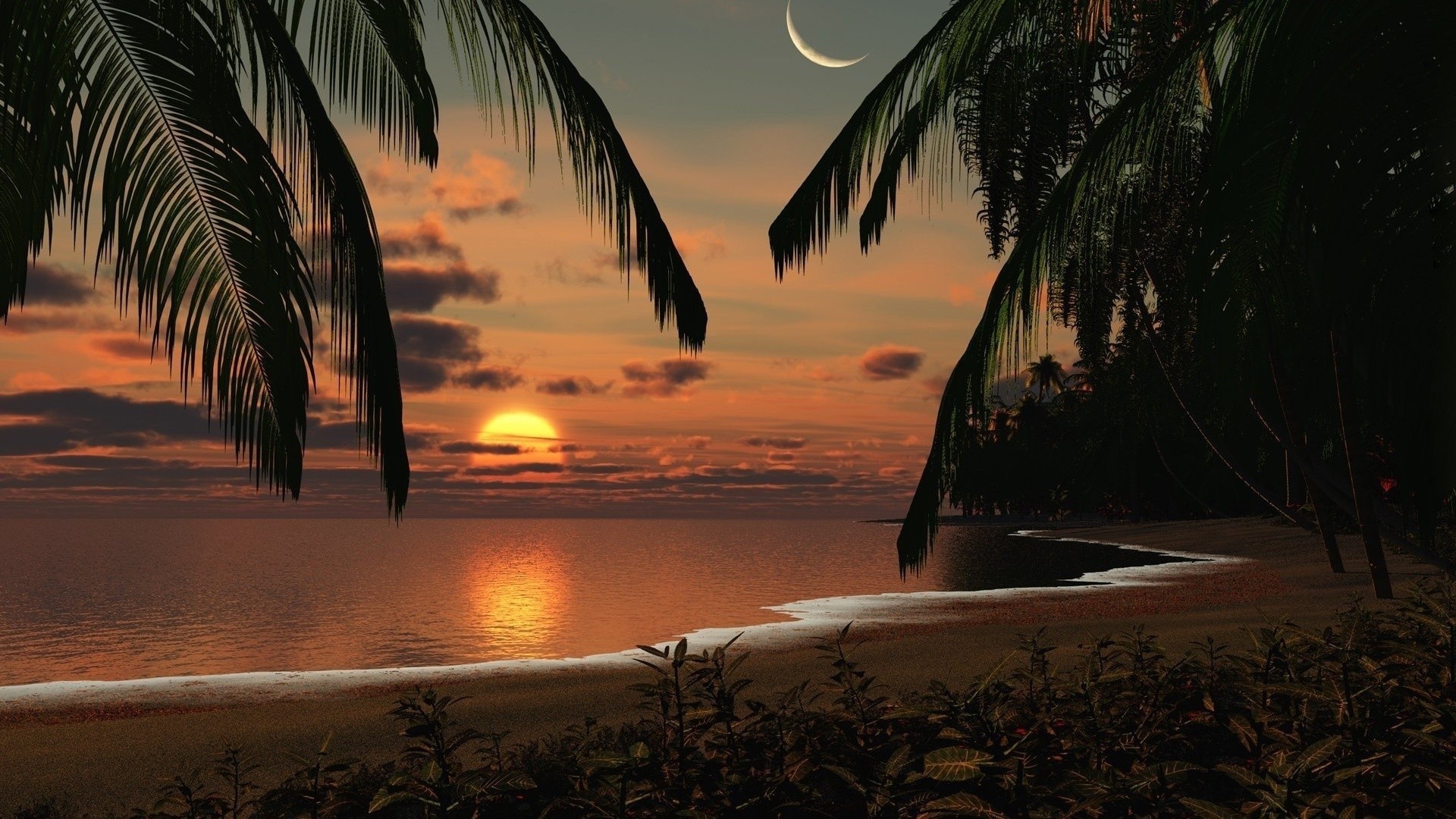 Tramonto su un'isola tropicale