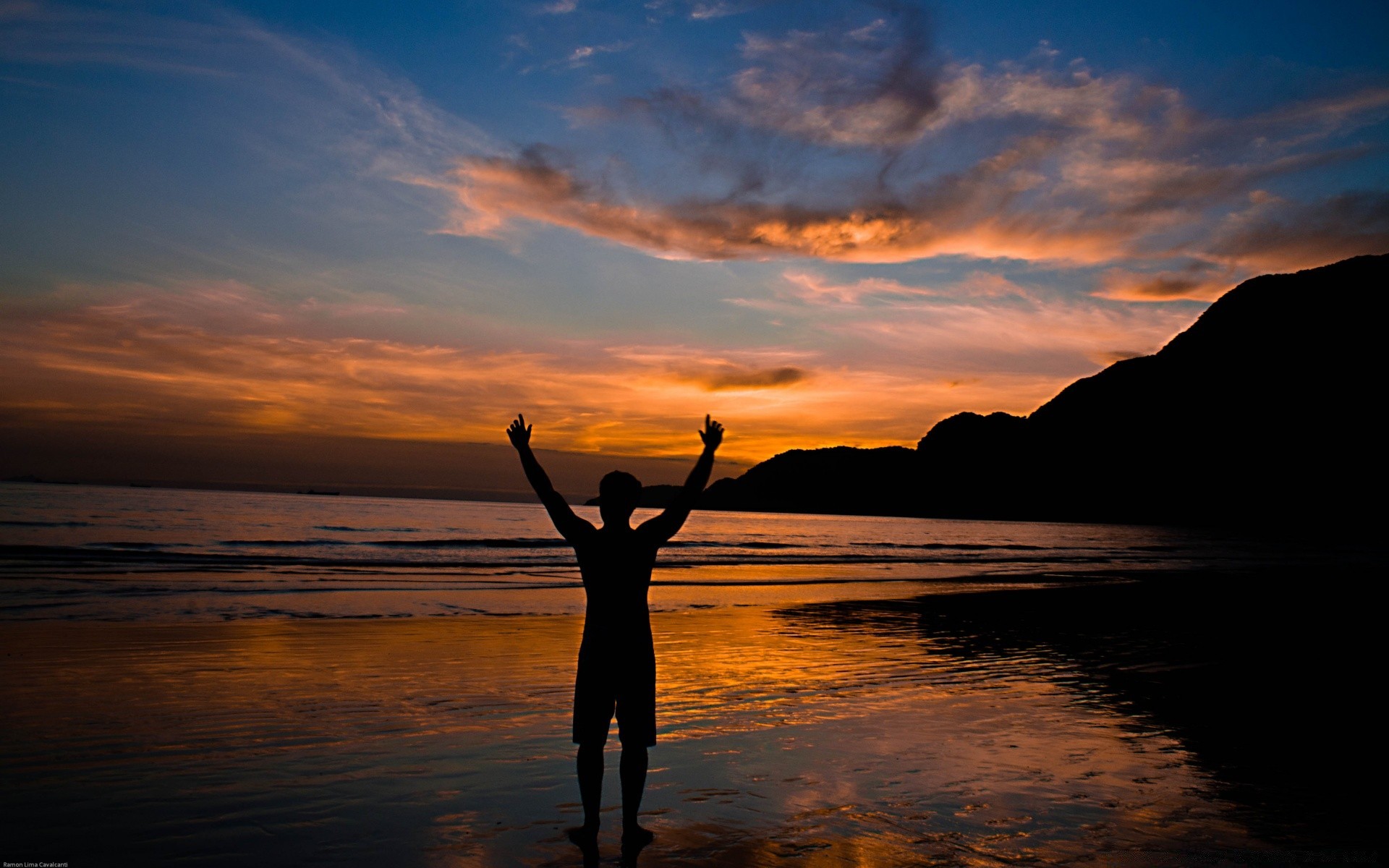 Spiaggia selvaggia al tramonto con schiuma di mare