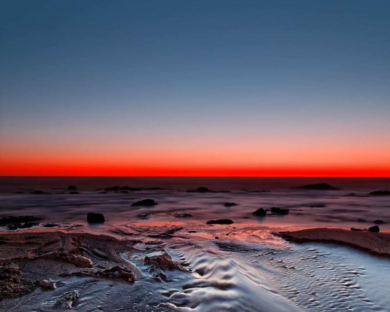 Spiaggia selvaggia al tramonto con schiuma di mare