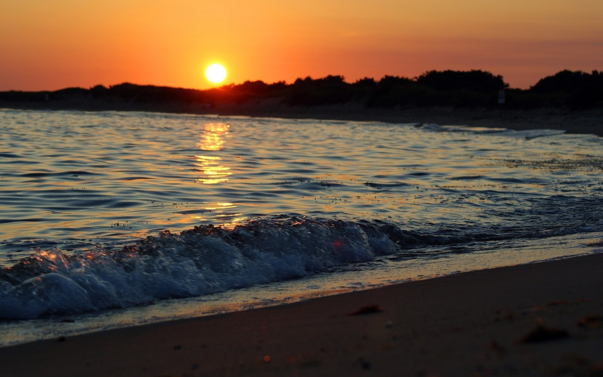 Spiaggia sabbiosa deserta bagnata dal mare sotto un cielo nuvoloso