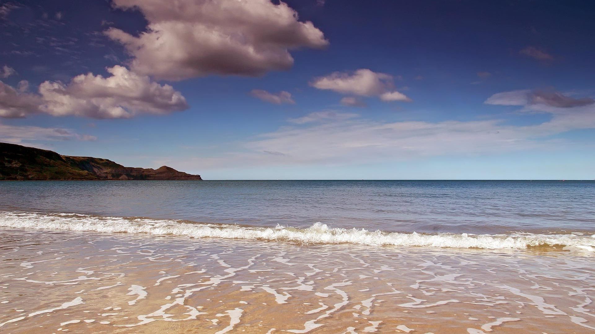 Vacanza sulla spiaggia estiva su uno sfondo di cielo blu