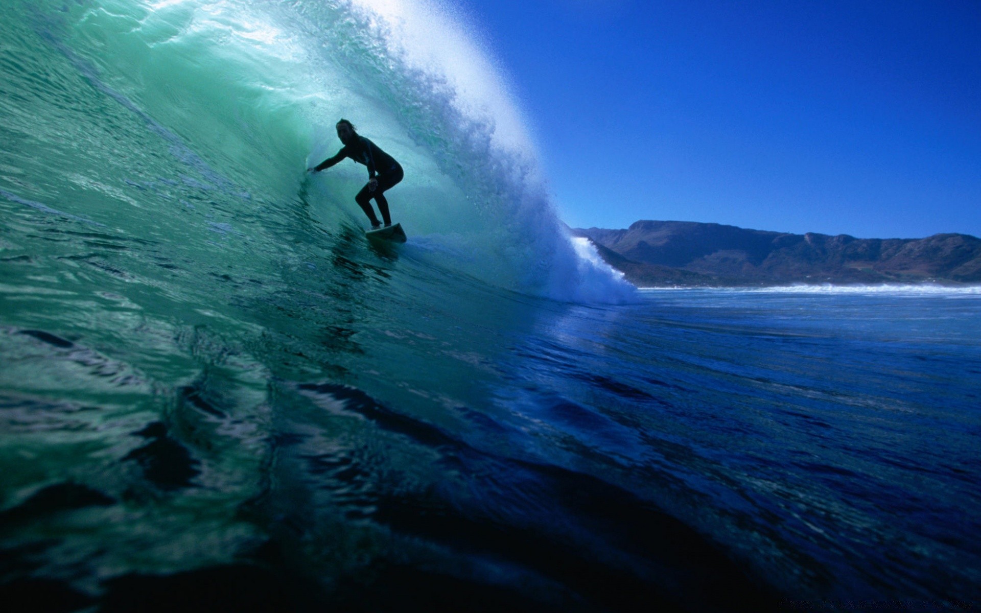 Foto del surfista nell'enorme onda dell'oceano