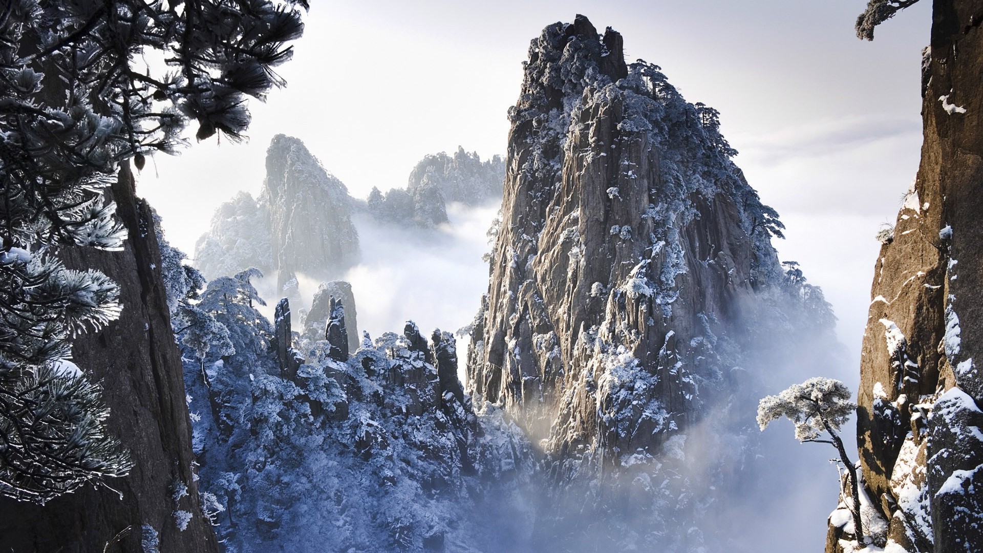 Illustrazione vettoriale di piste invernali con alberi di Natale nella neve