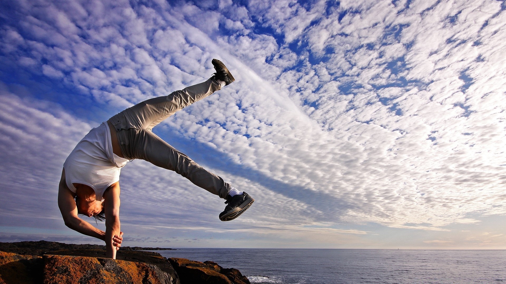 Parkour. La ragazza esegue una capriola laterale con un ostacolo