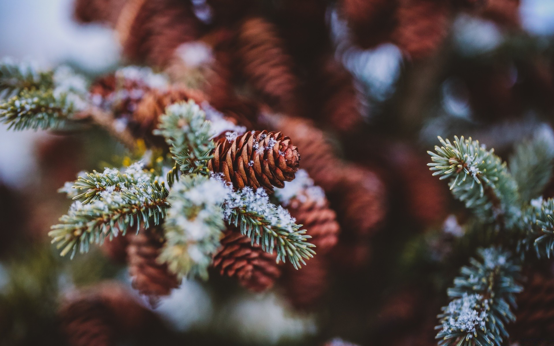 Coni verdi e gialli cosparsi di neve