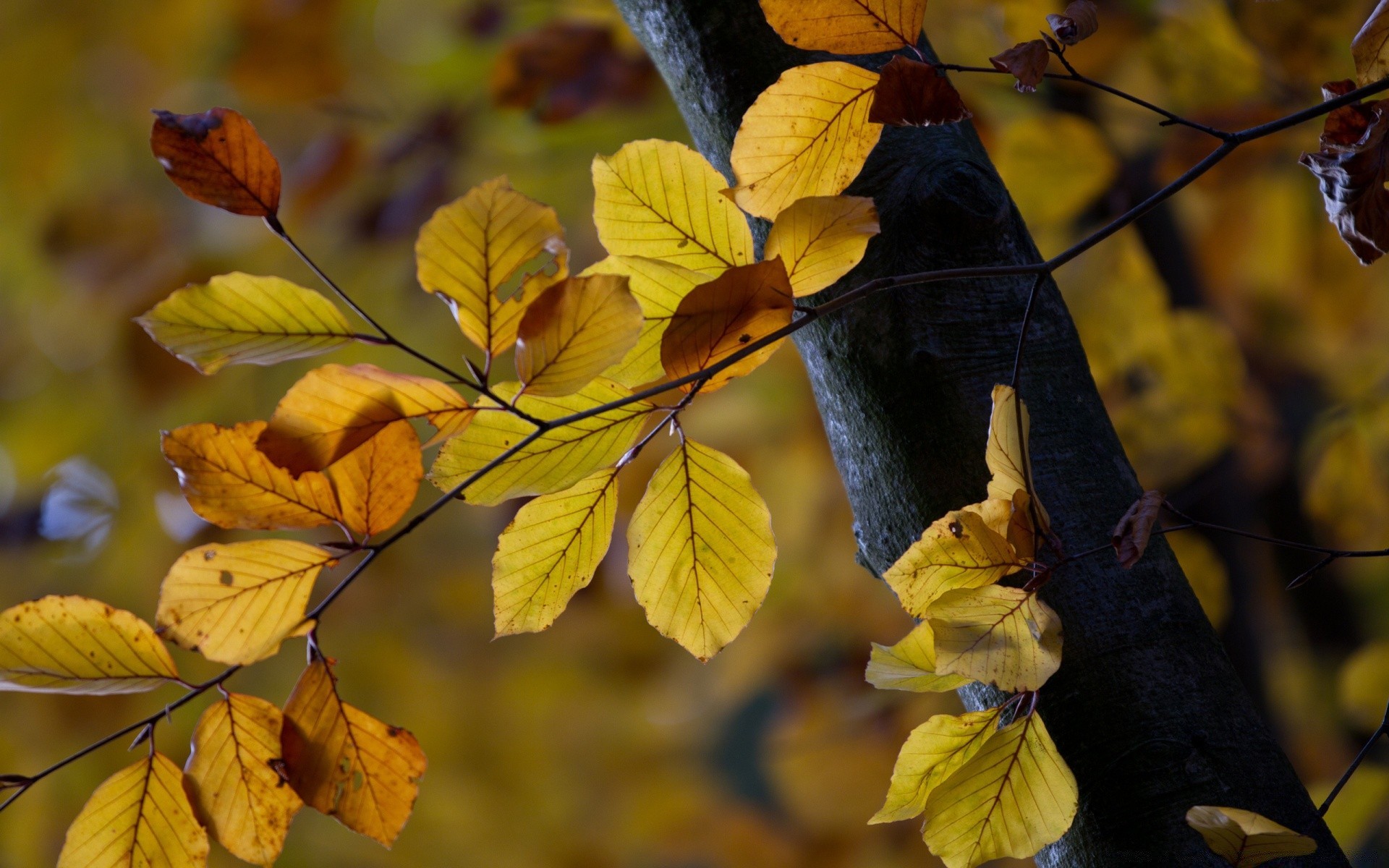 Albero su cui rami con foglie gialle