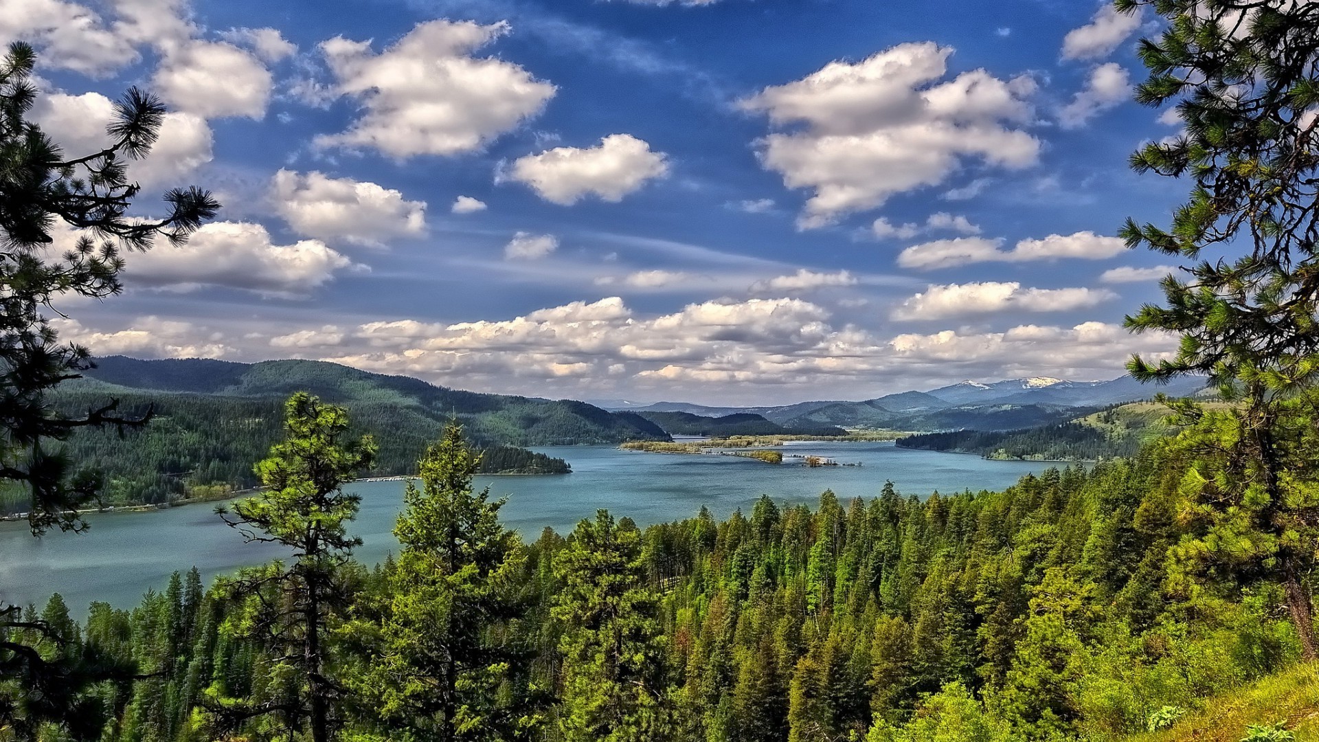 Riflessione speculare di nuvole rosa-viola nell'acqua