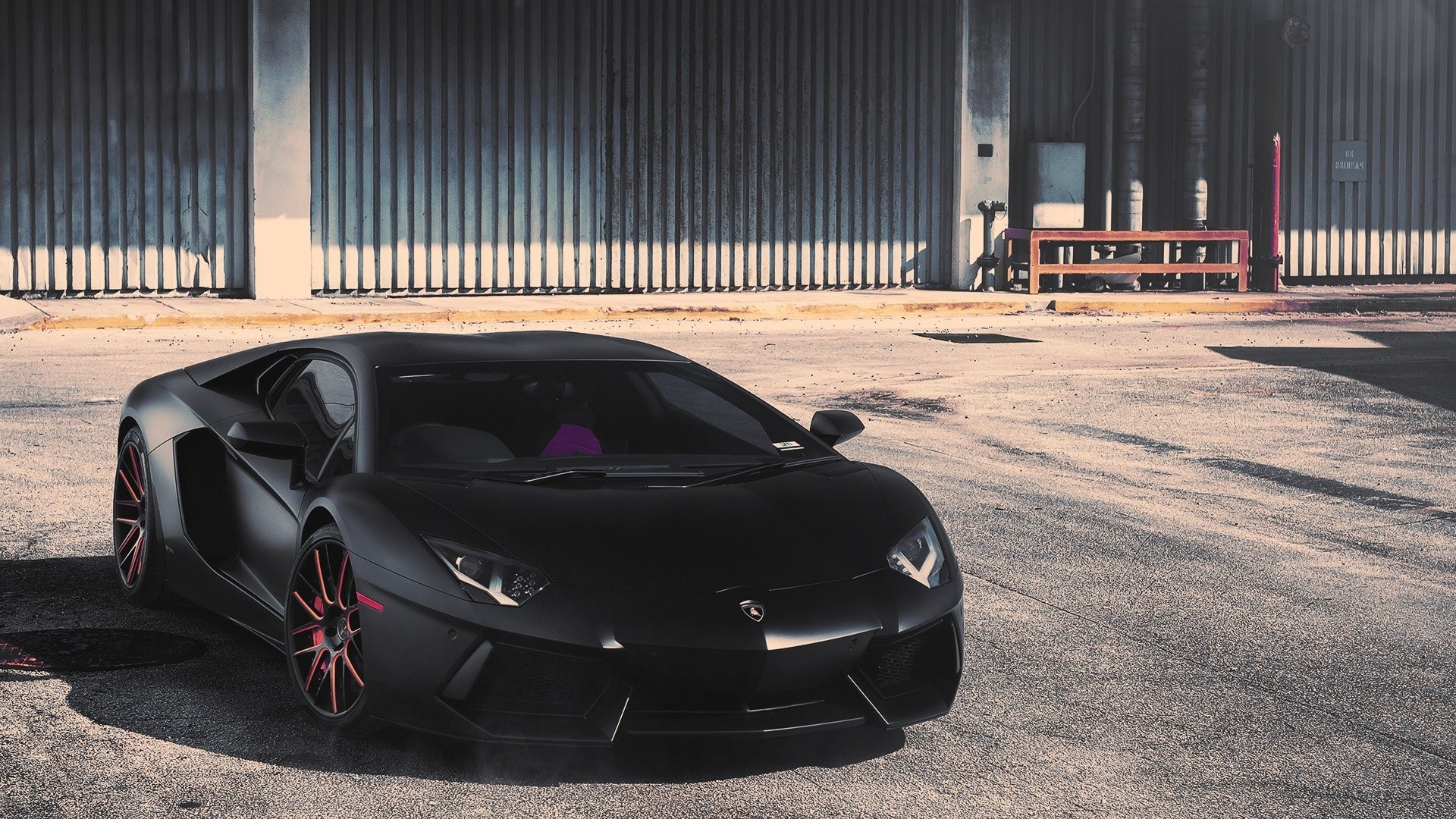 Auto sportiva nera parcheggiata fuori dal garage