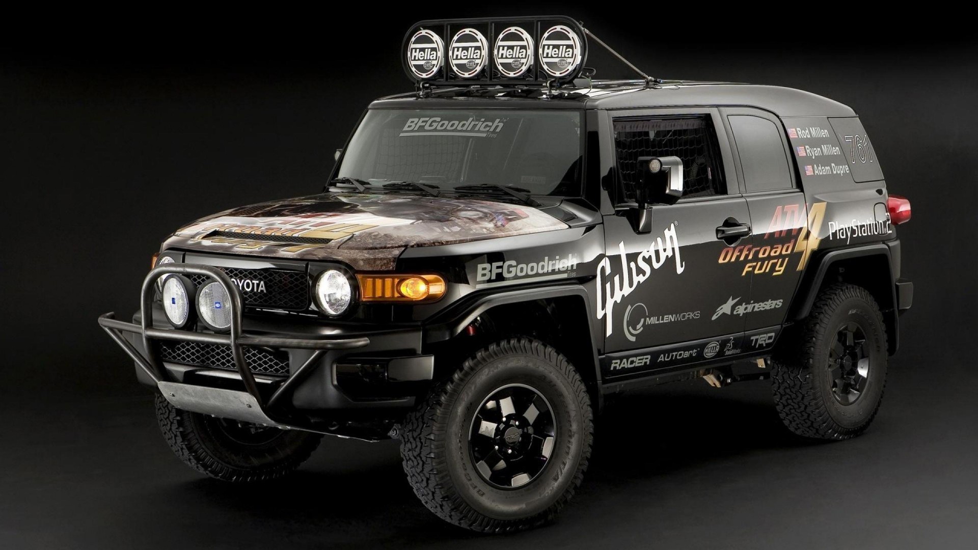 Potente Toyota nera su sfondo nero