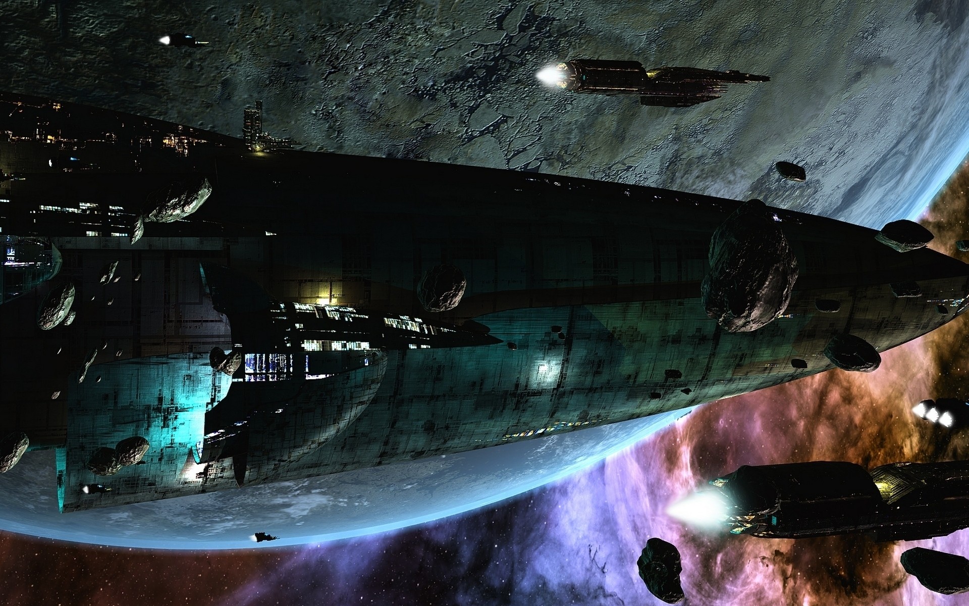 Volo in holactic sulla stazione spaziale nel lato oscuro della Luna